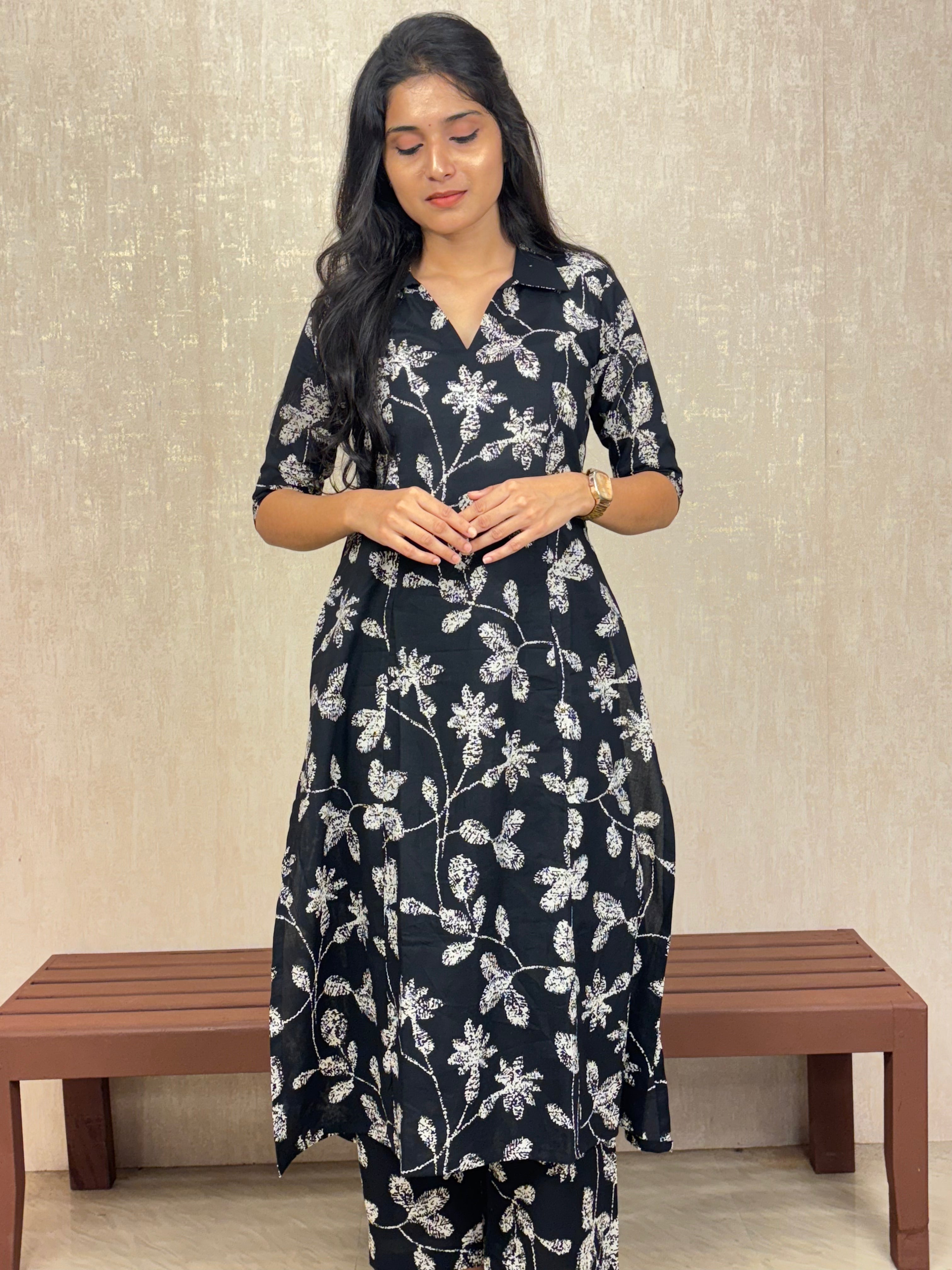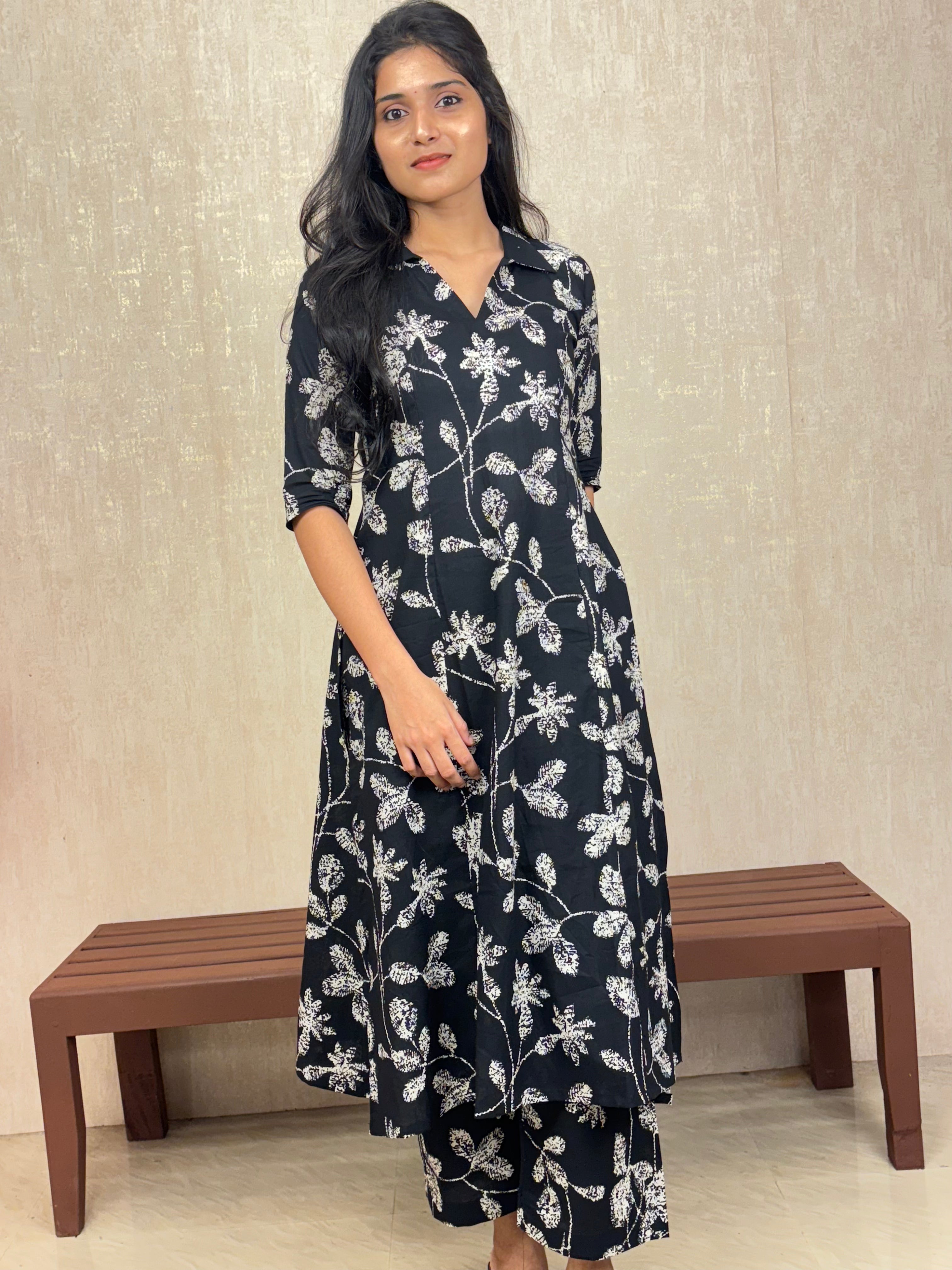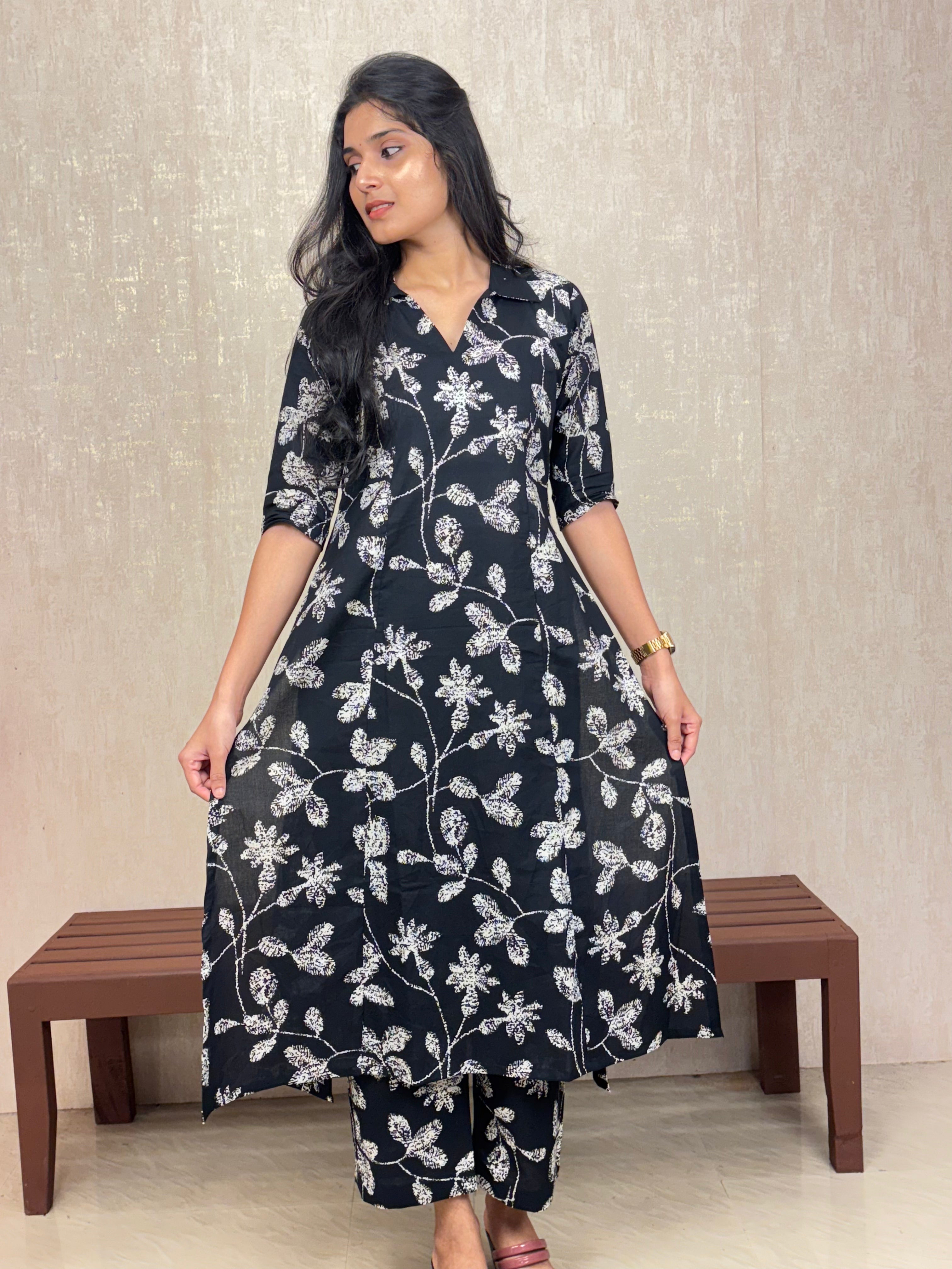 Black & White Jaipur Cotton Co-ord Set – EC078