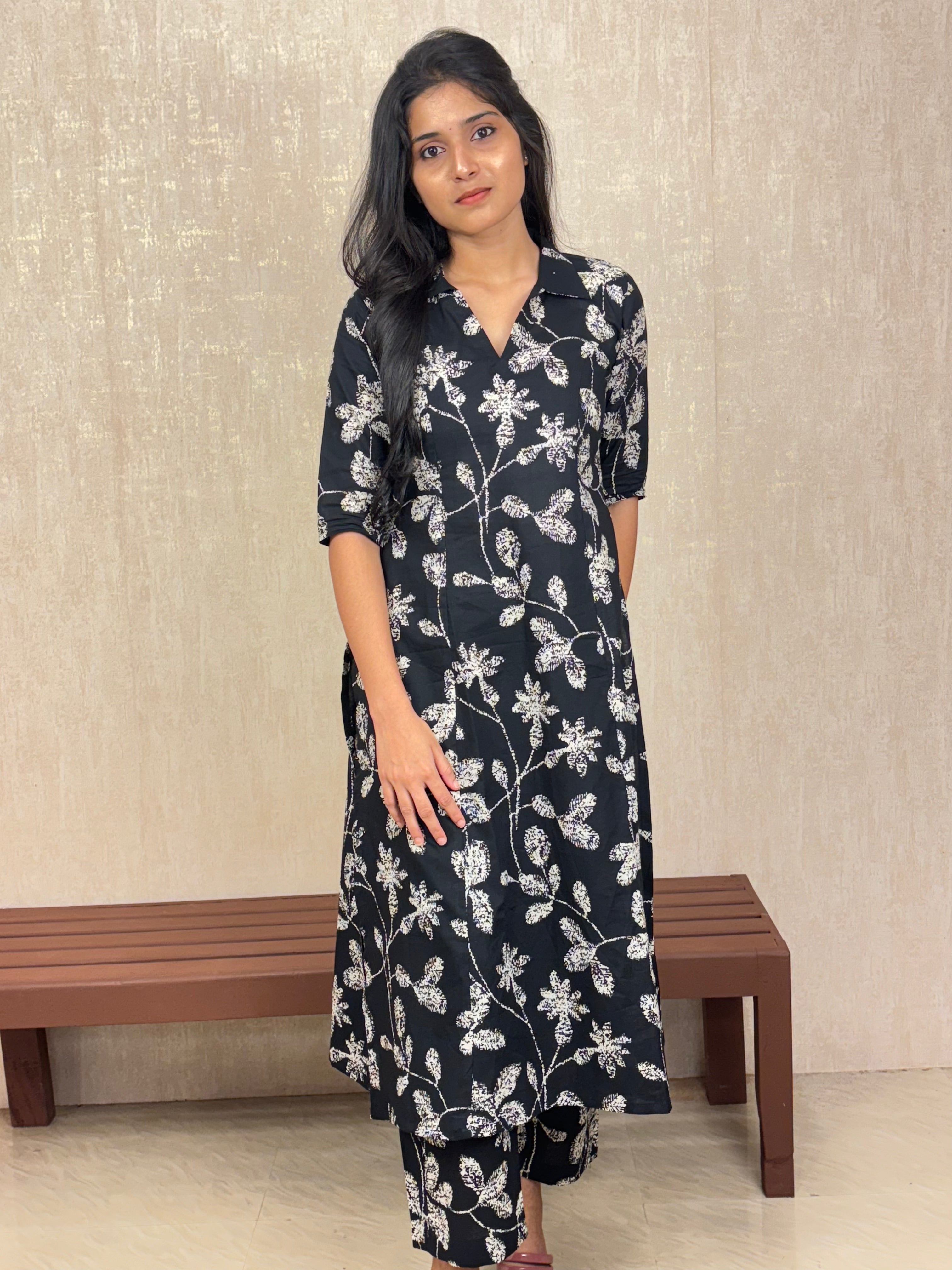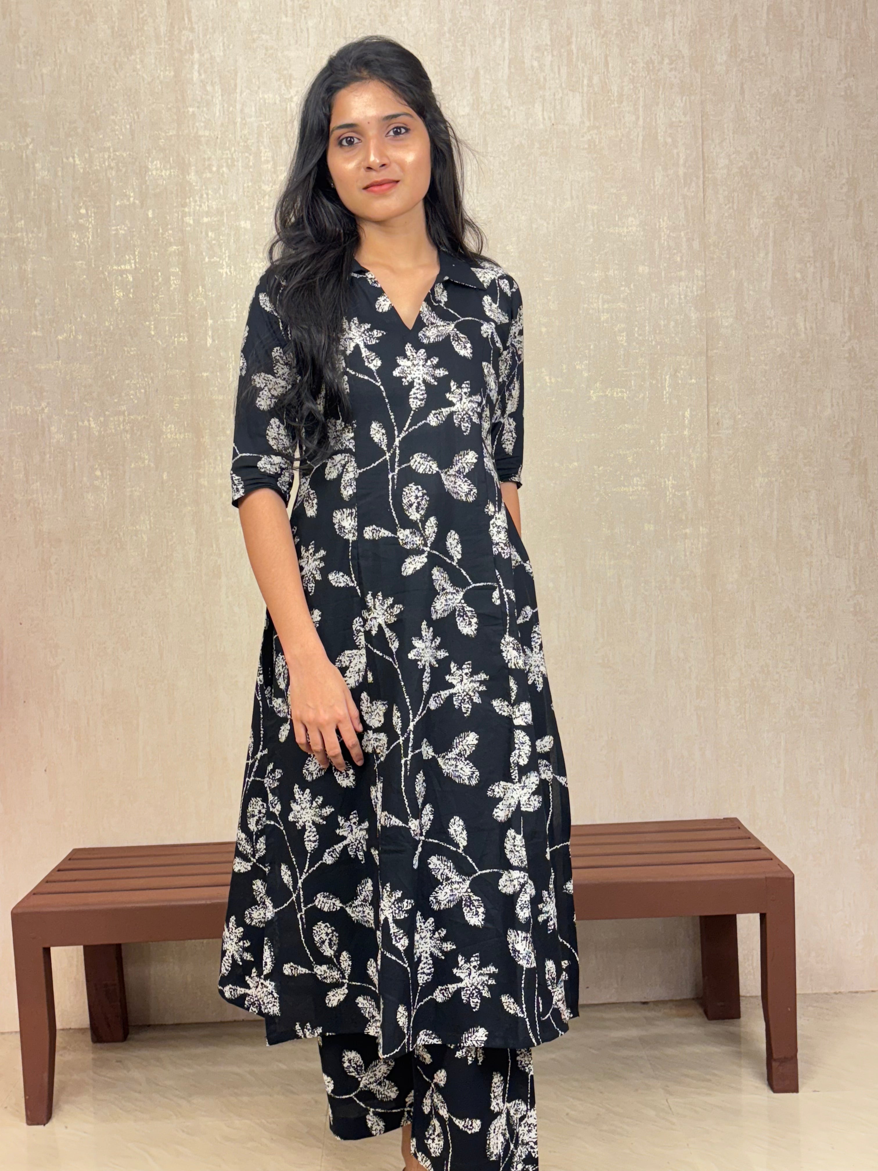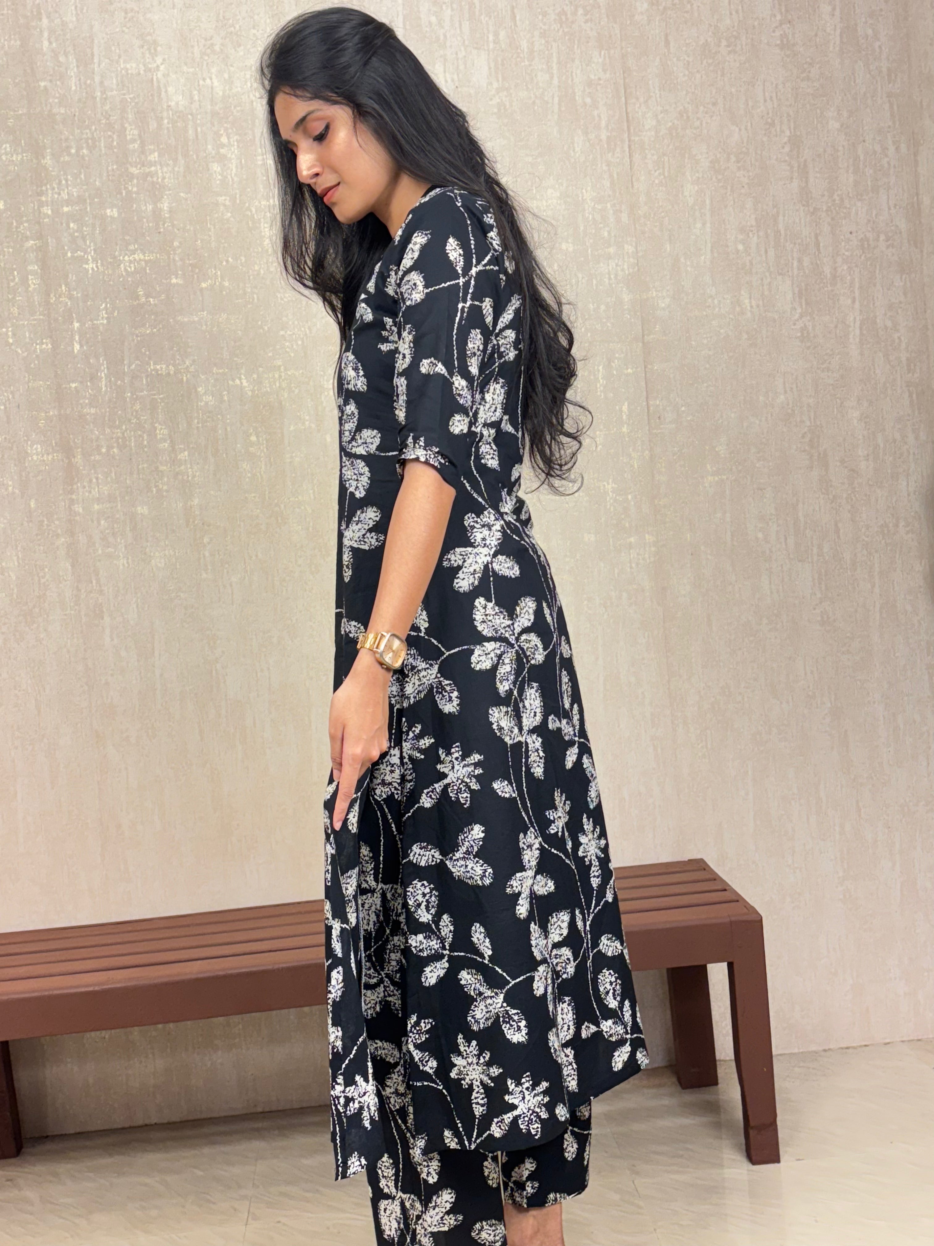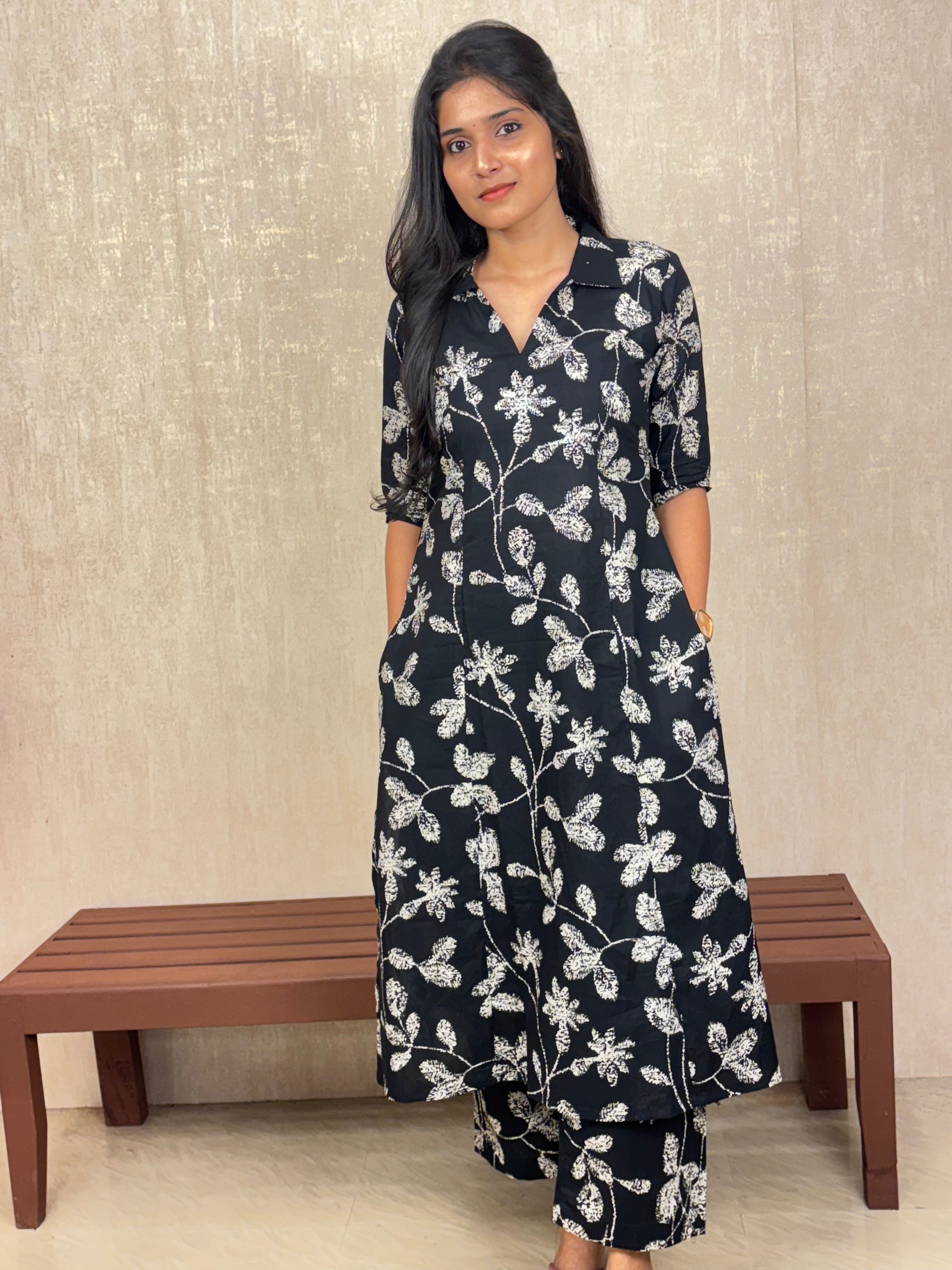 Black & White Jaipur Cotton Co-ord Set – EC078