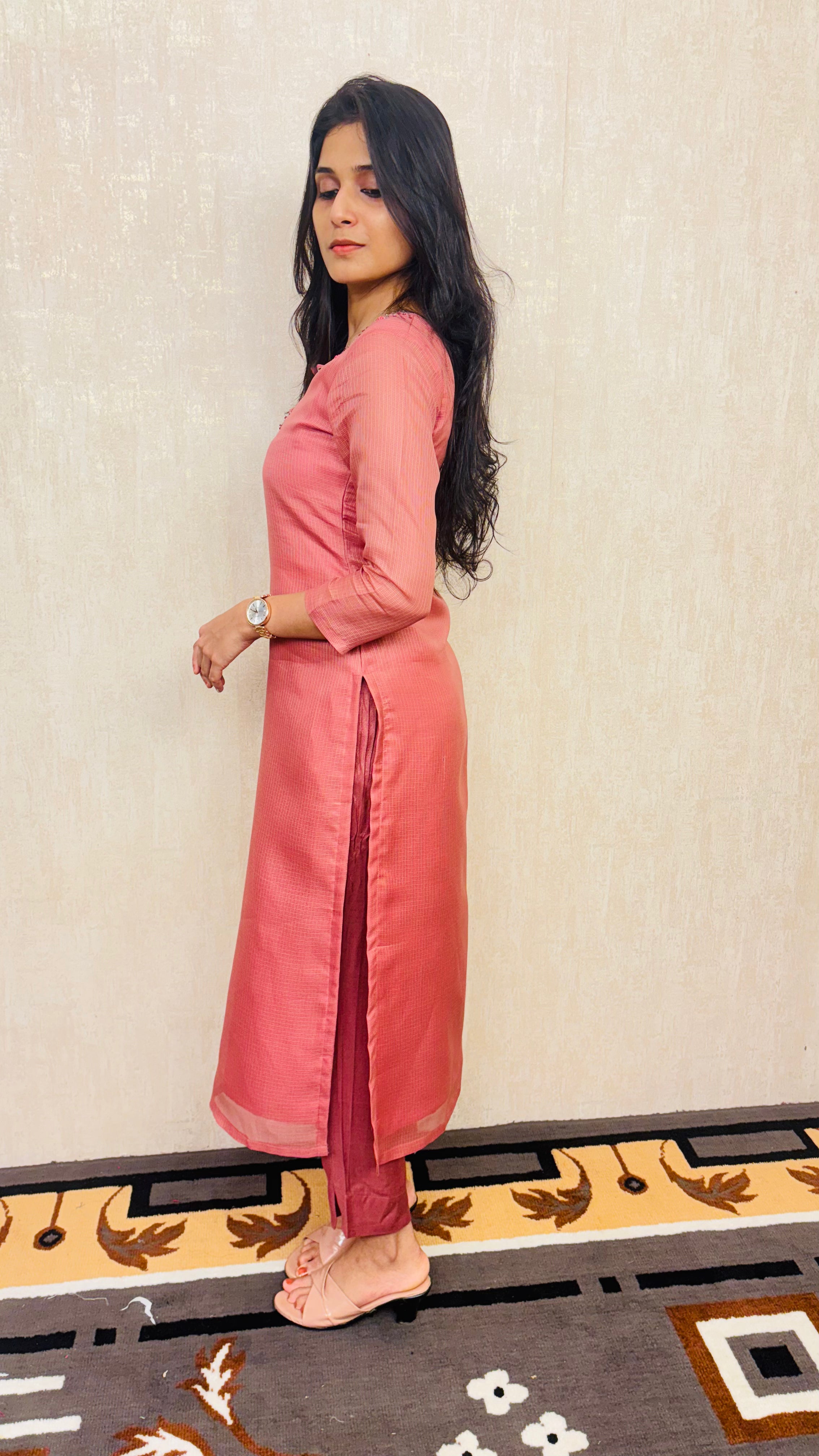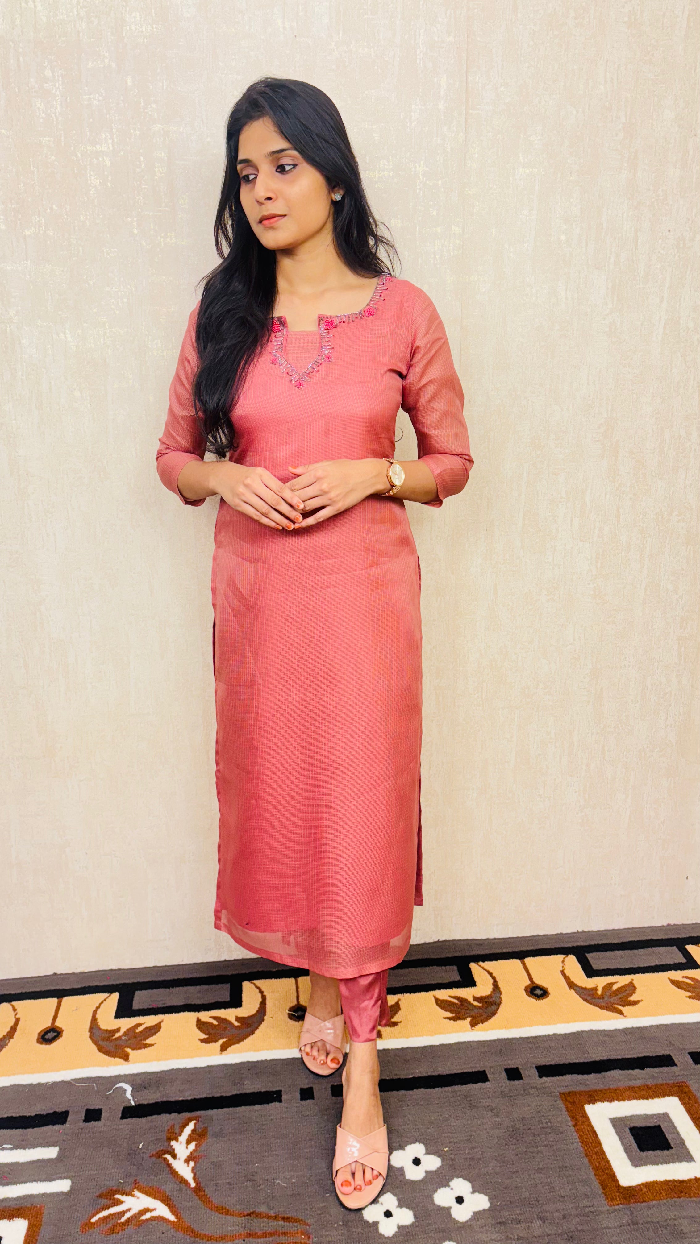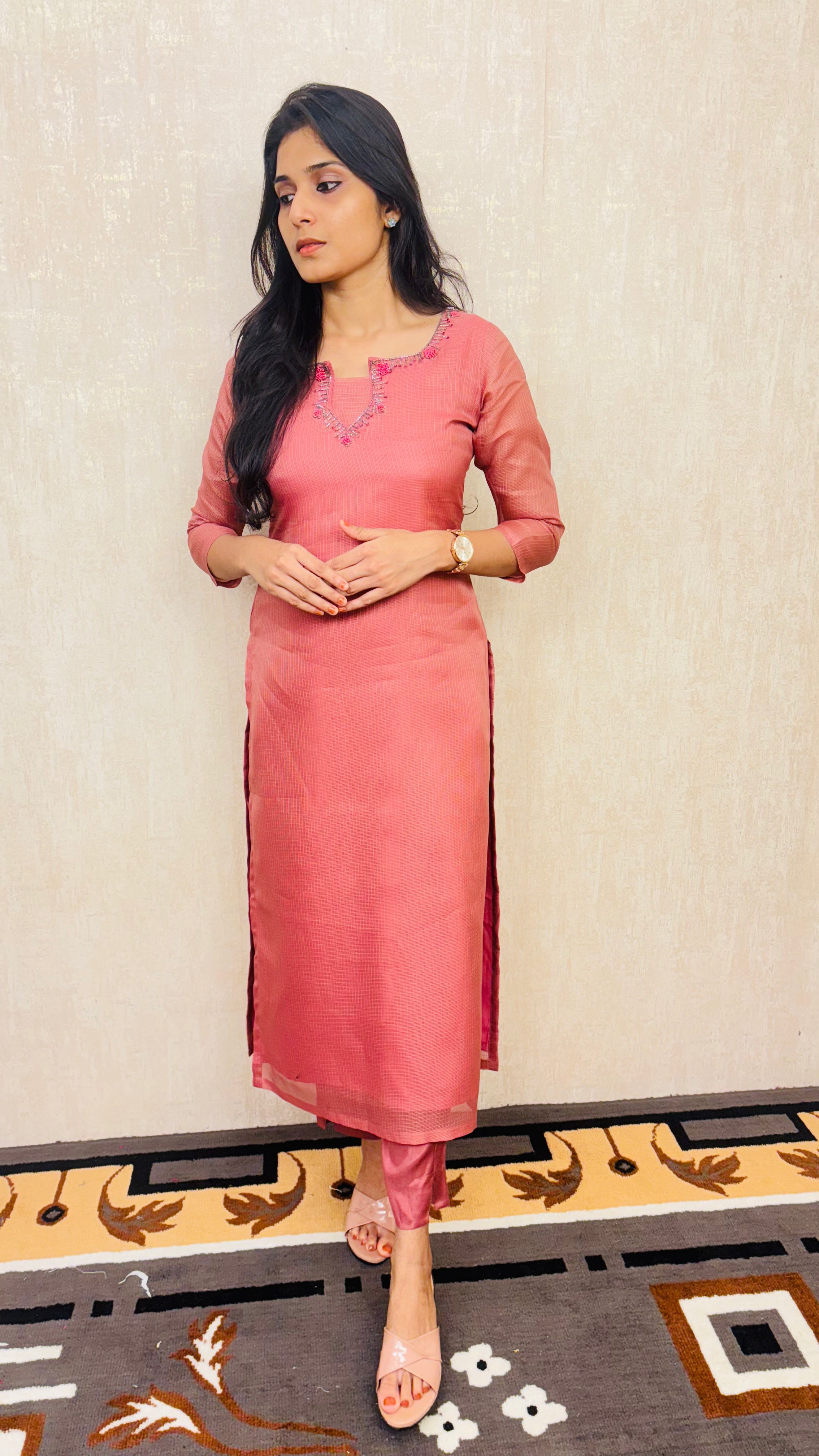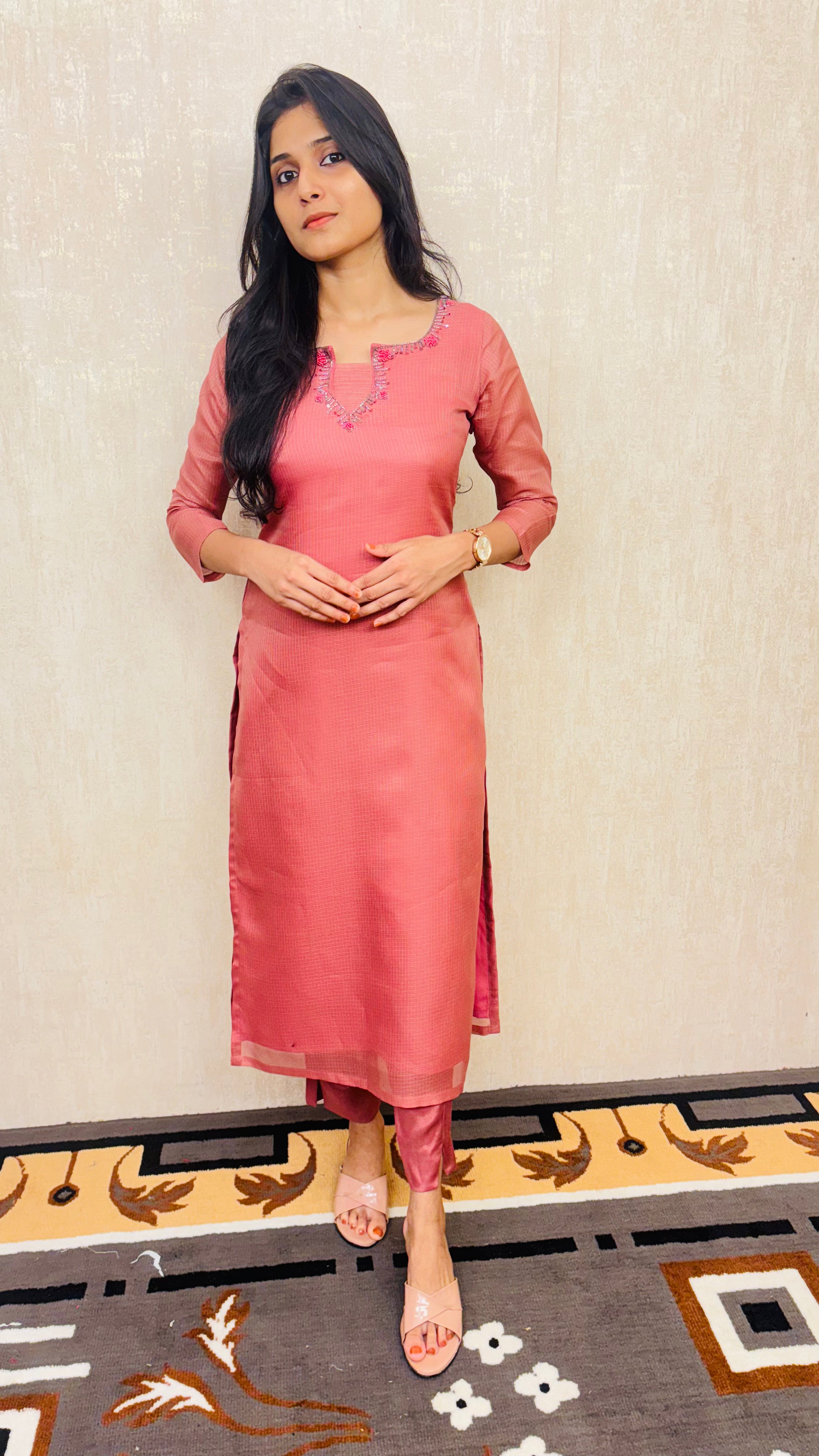 Cotta Net Embroidered Kurta with Crepe Pencil Pant EC032