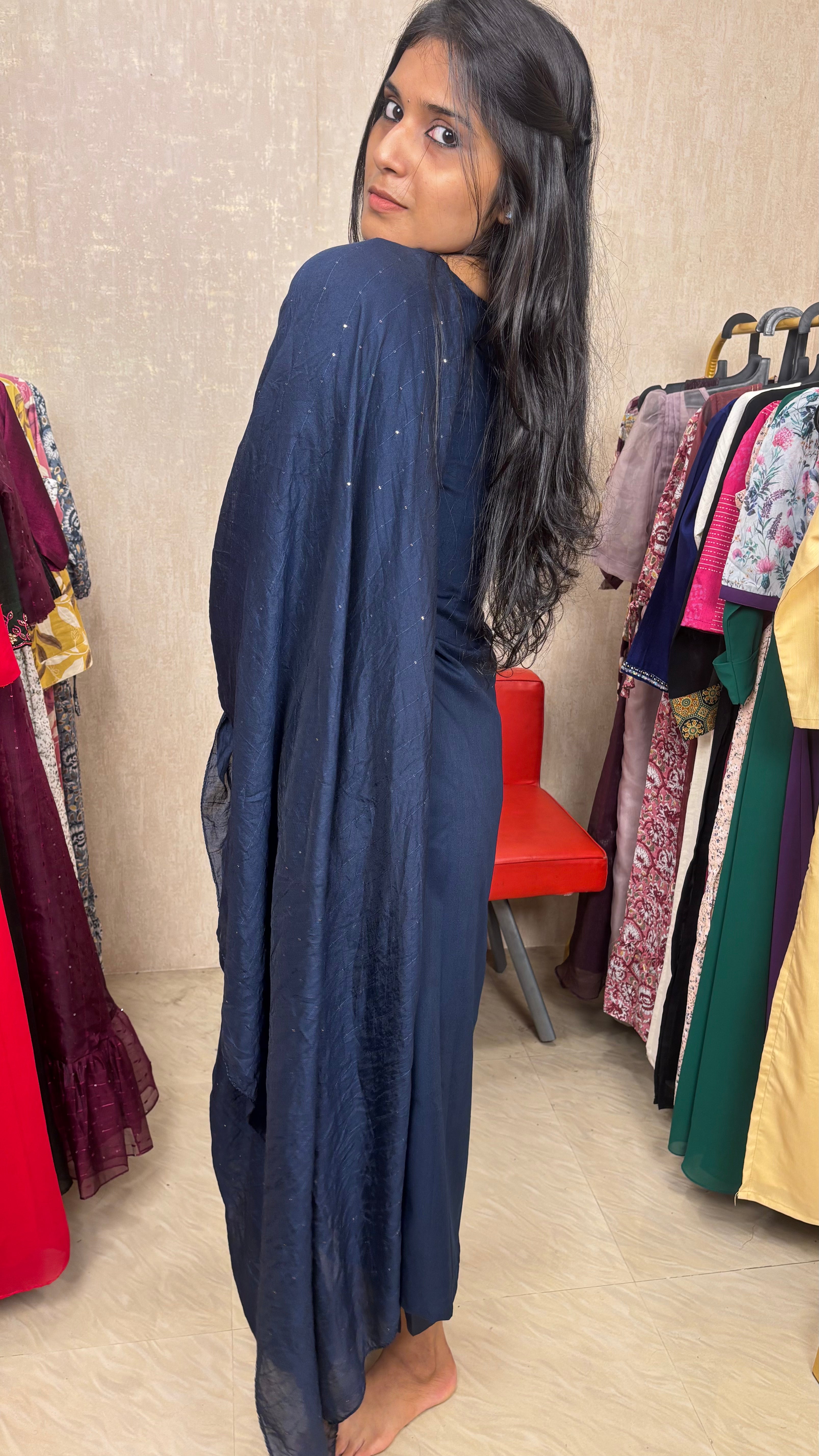 A graceful Kurti set crafted in soft cotton slub with elegant multicolor floral embroidery on the yoke. Paired with a silk bottom and a matching dupatta, this outfit offers both comfort and sophistication—perfect for festive occasions and casual gatherings.