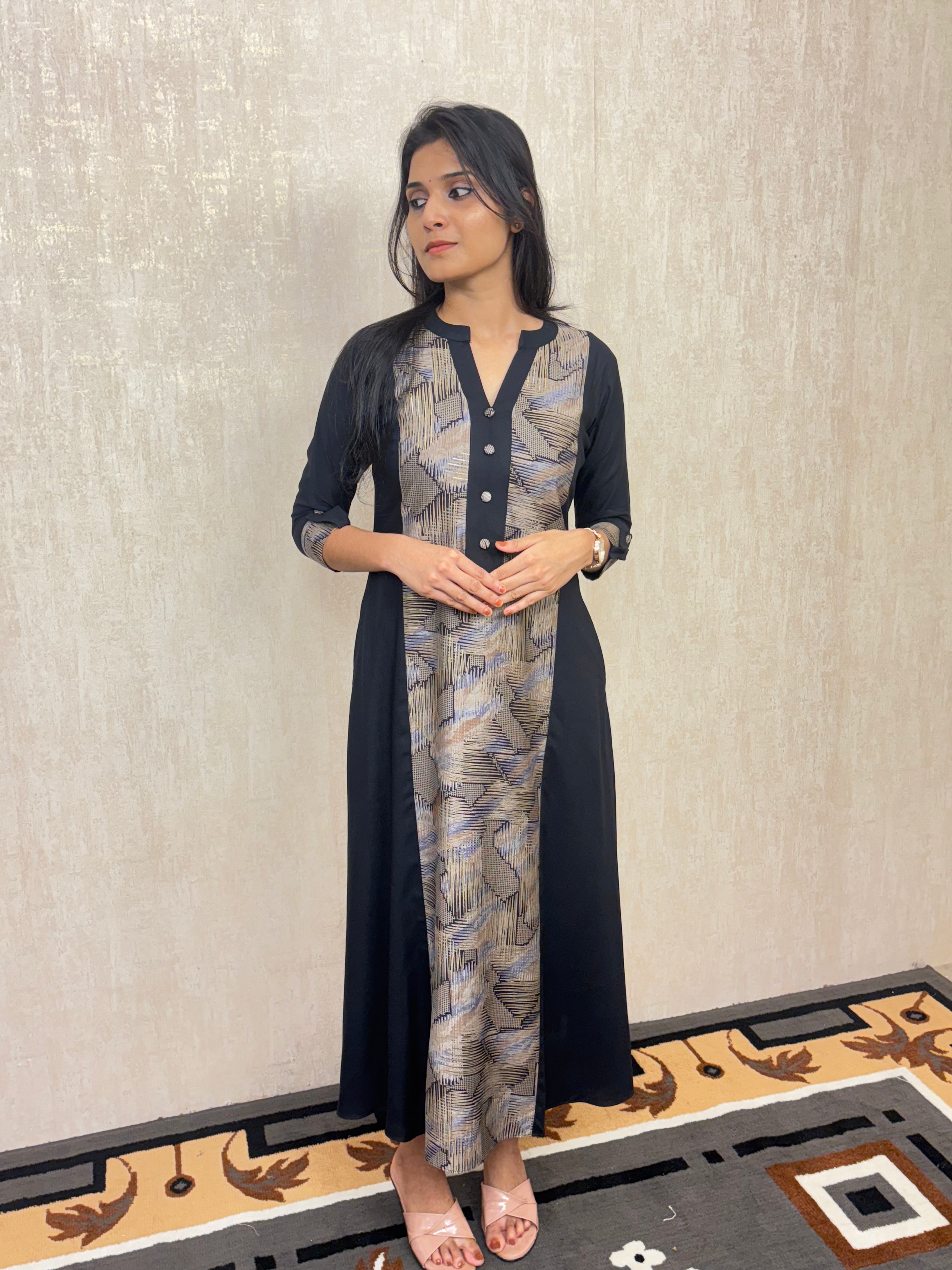 Fabric: Super soft rayon with foil print finish Design: Floral foil print with mix-and-match paneling Style: A-line silhouette for a... Read more
