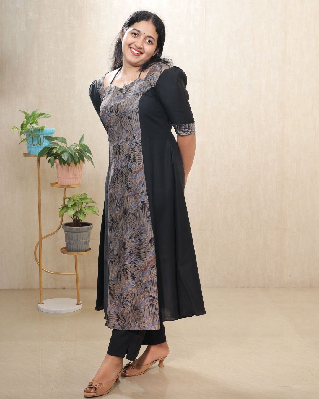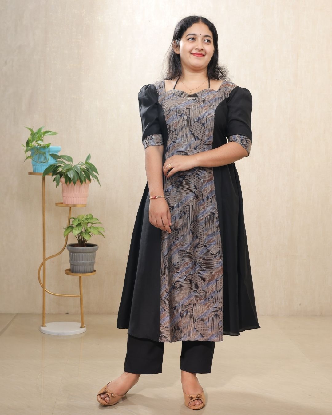 EC098 – Modal Silk & Rayon A-Line Kurti Set with Crepe Pant
