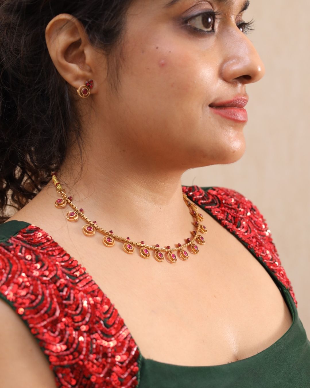 Ethnista Ruby Drop Necklace & Stud Earrings Set – EJ2