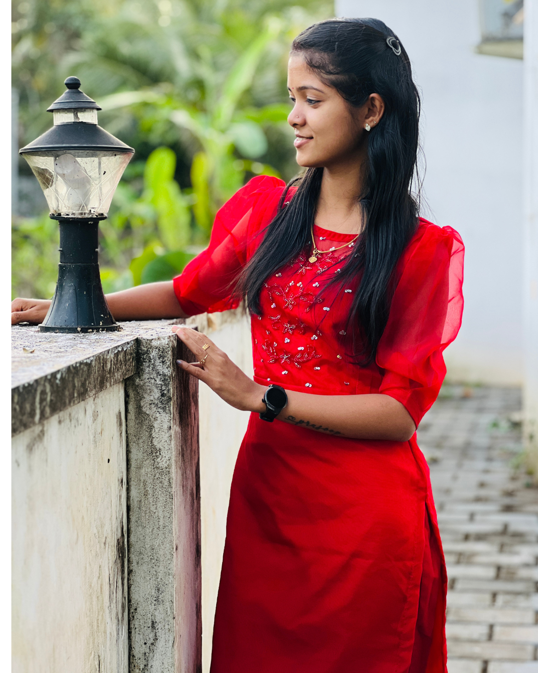 Hand Embroidered Soft Organza Kurti with Butter Crepe Lining EC033