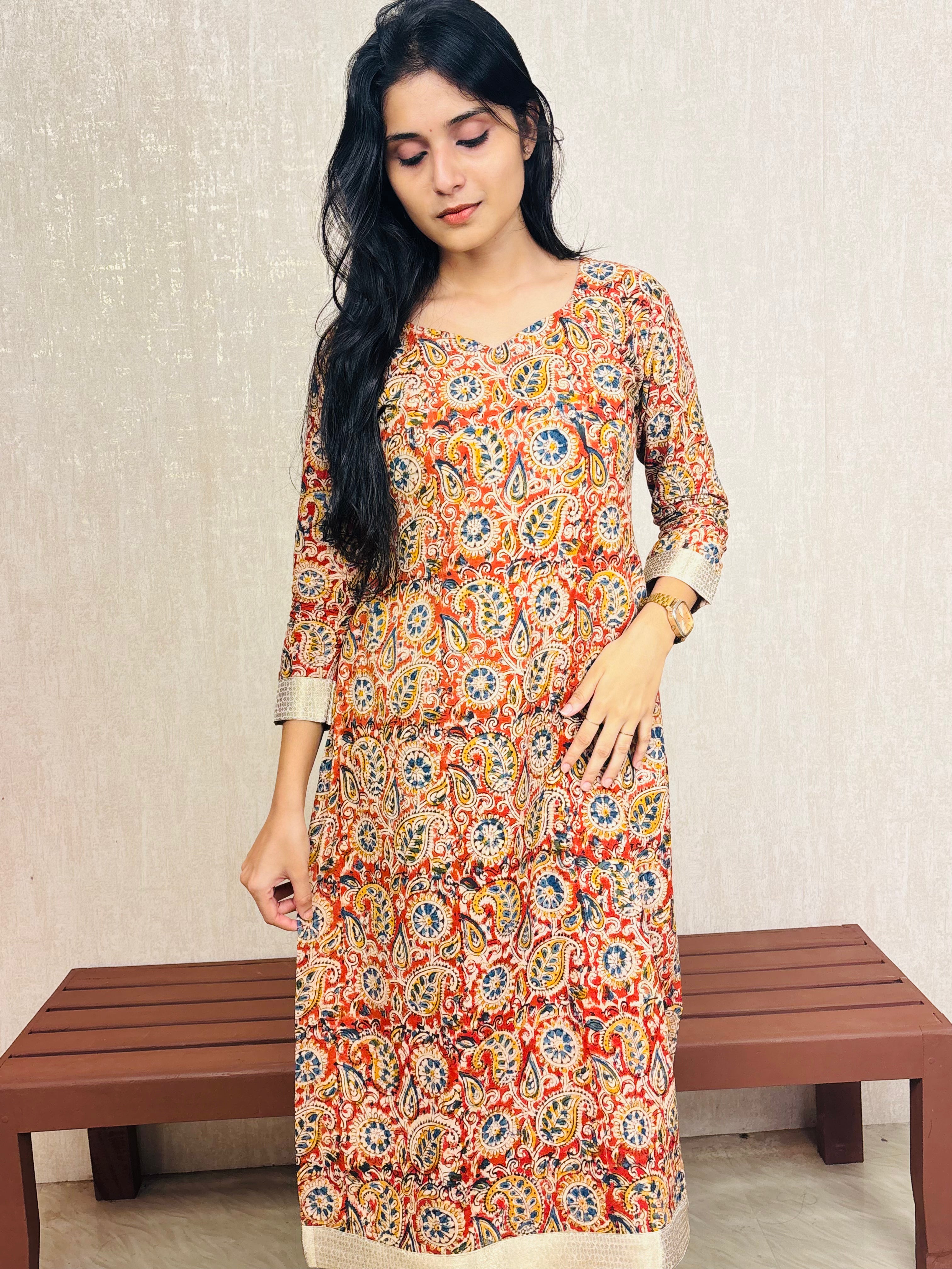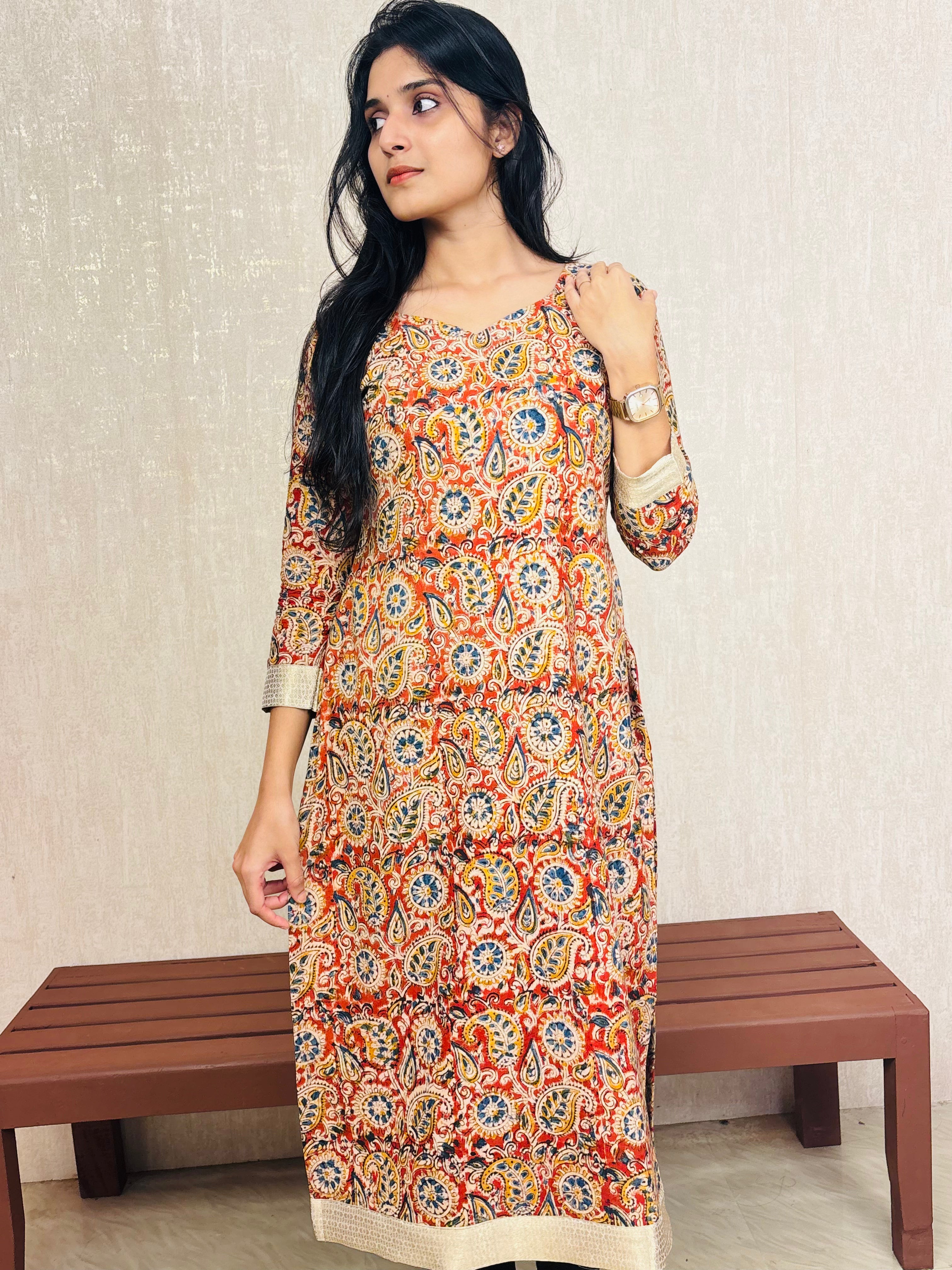 Kalankari Cotton Printed Kurti with Golden Border – EC077