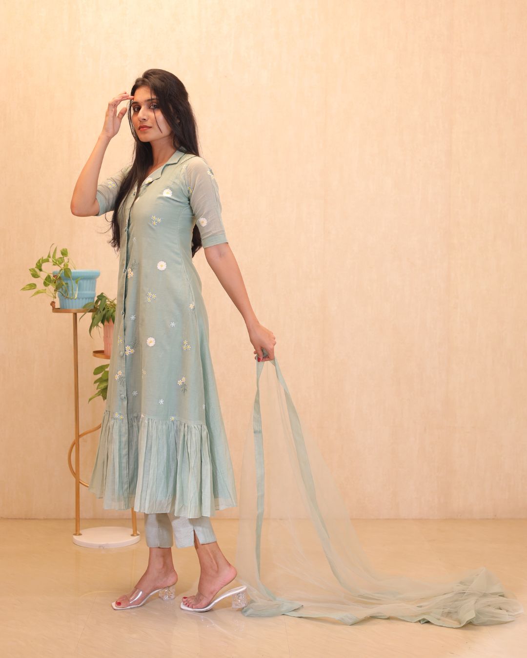 Mul Chanderi Embroidered Kurti Set -EC106