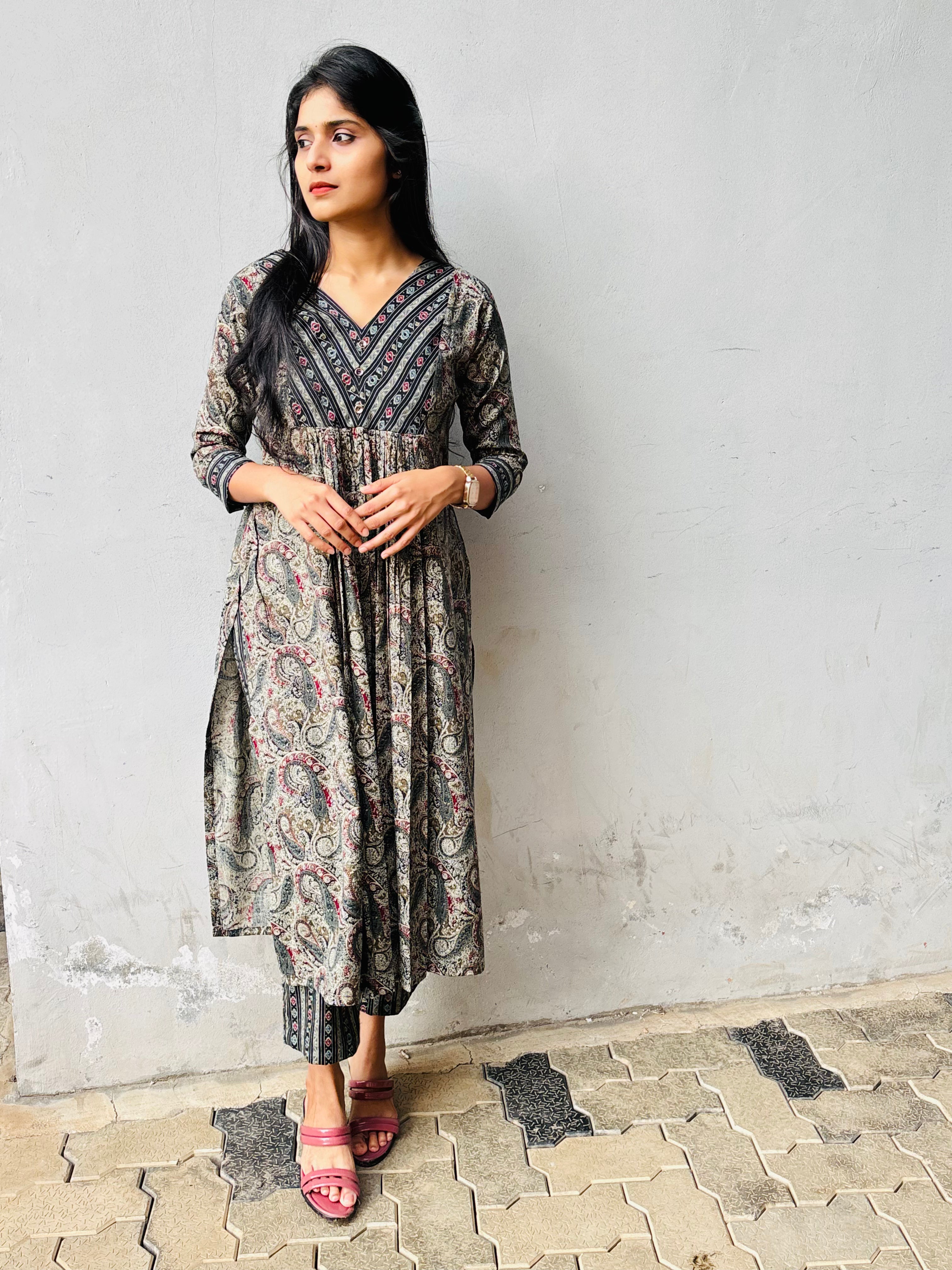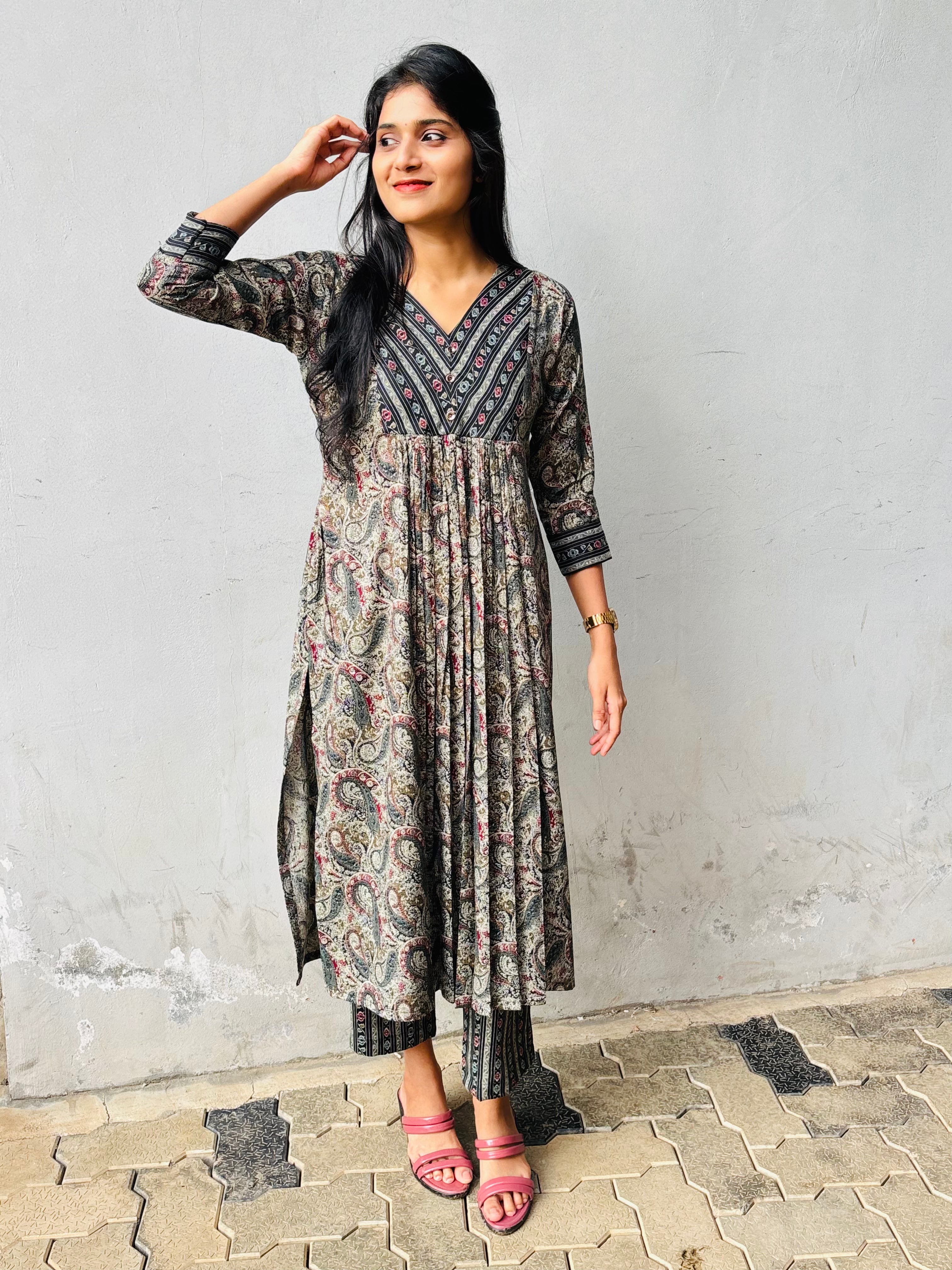 Paisley Printed Super Rayon Kurta Set with Pencil Bottom – EC06