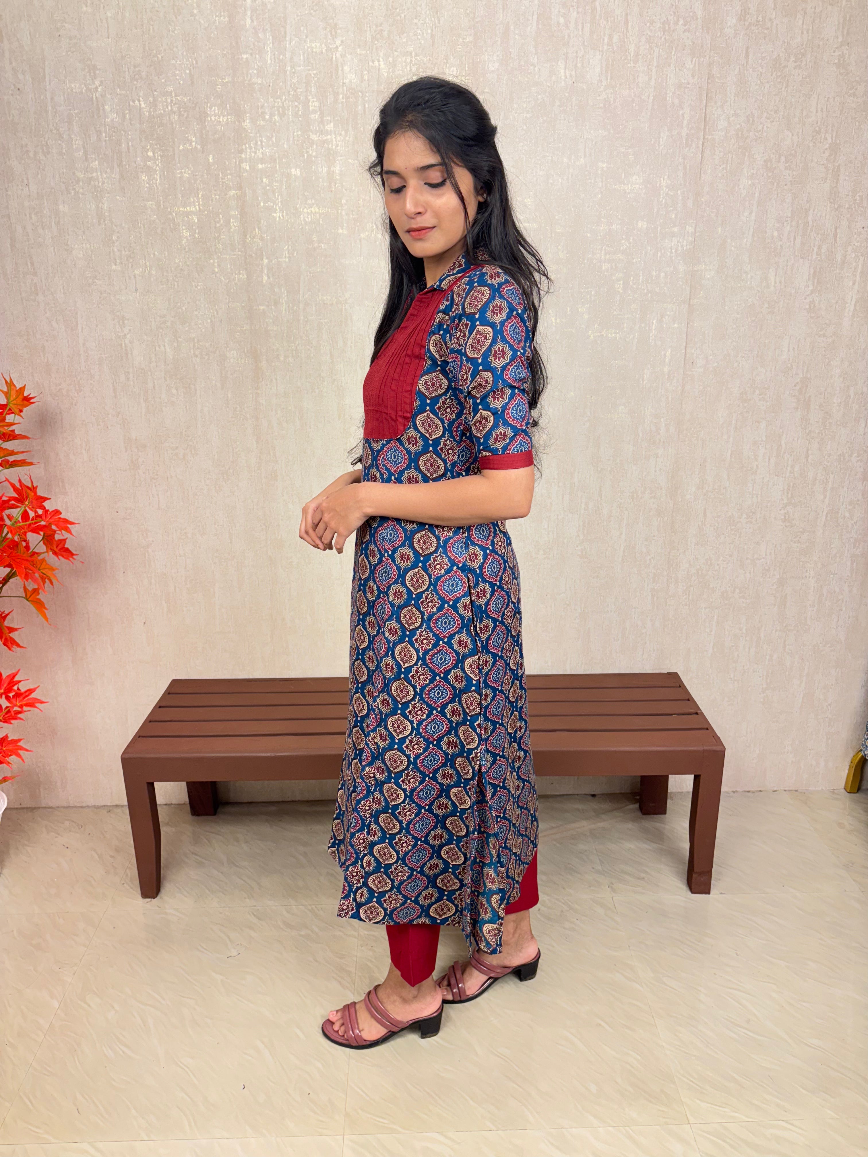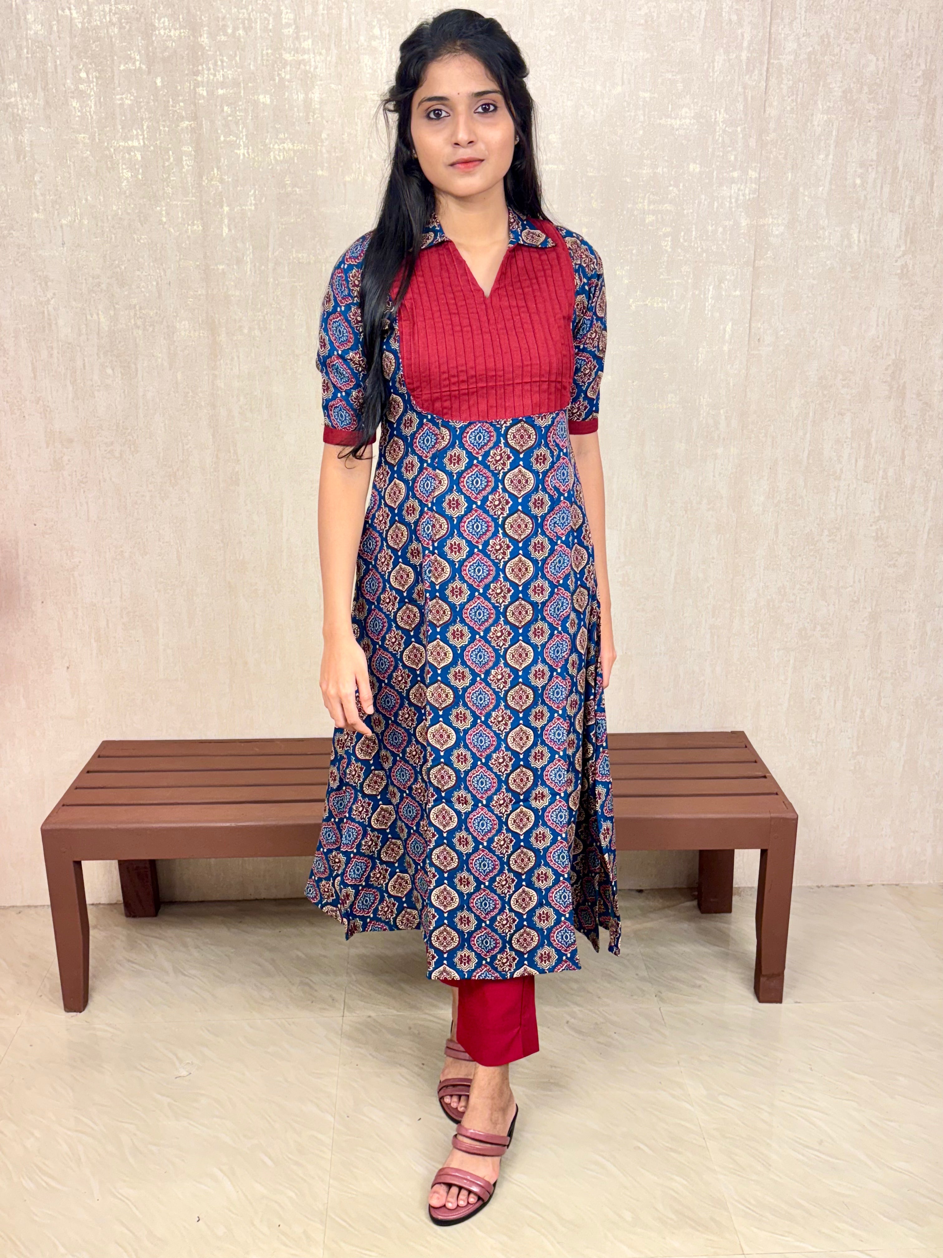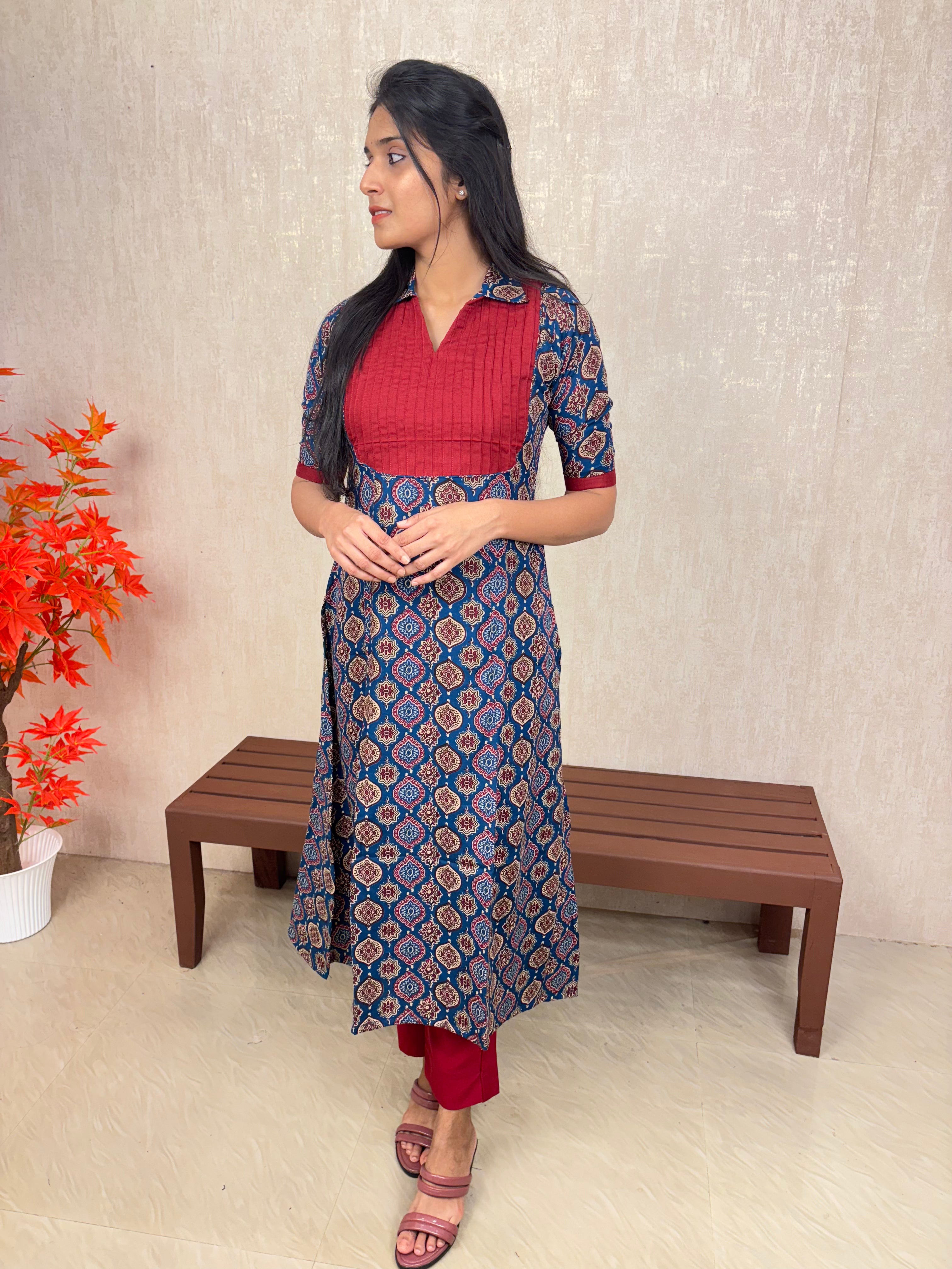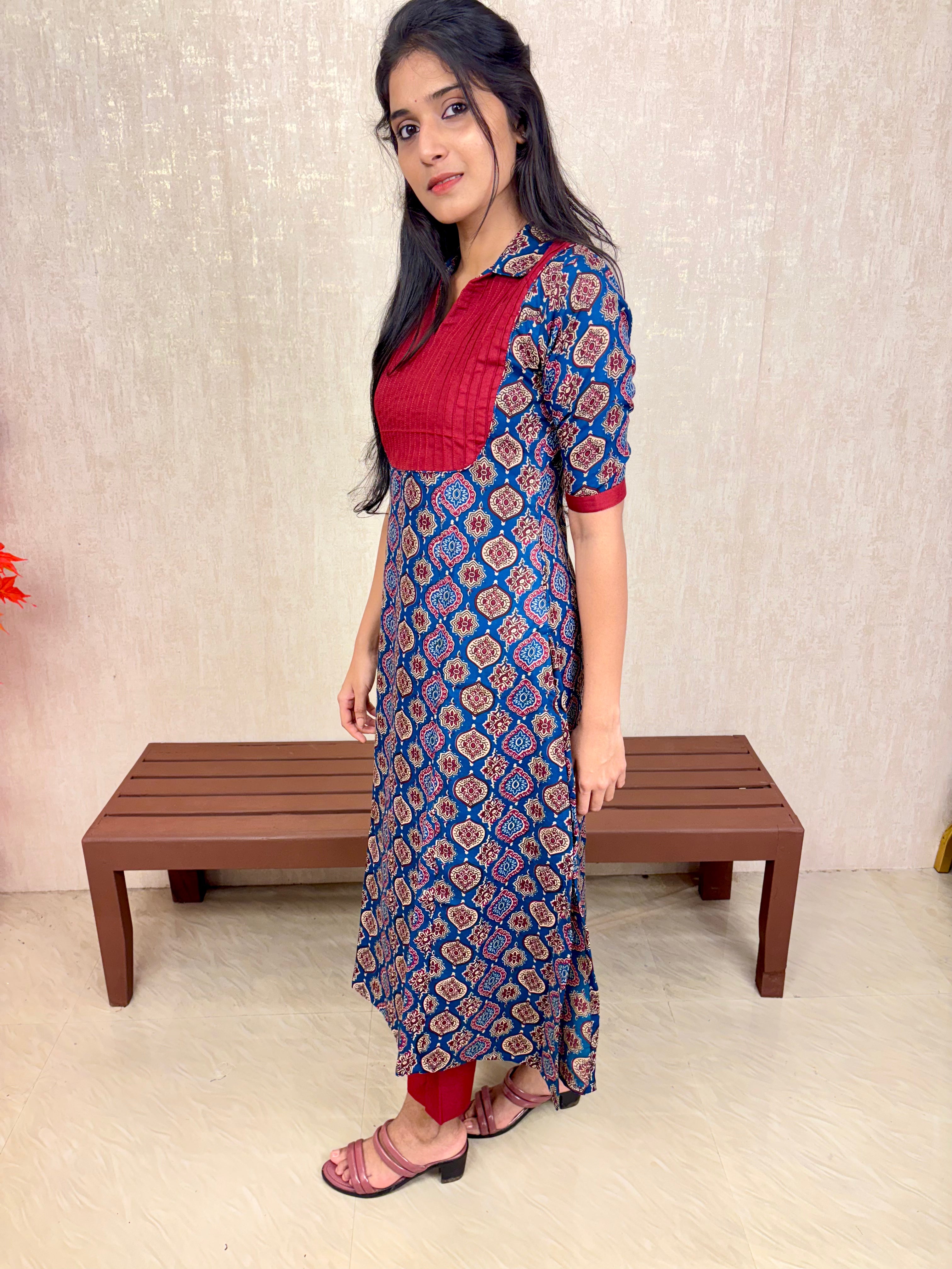 Printed Cotton A-Line Kurti with Pin Tuck Yoke – EC073