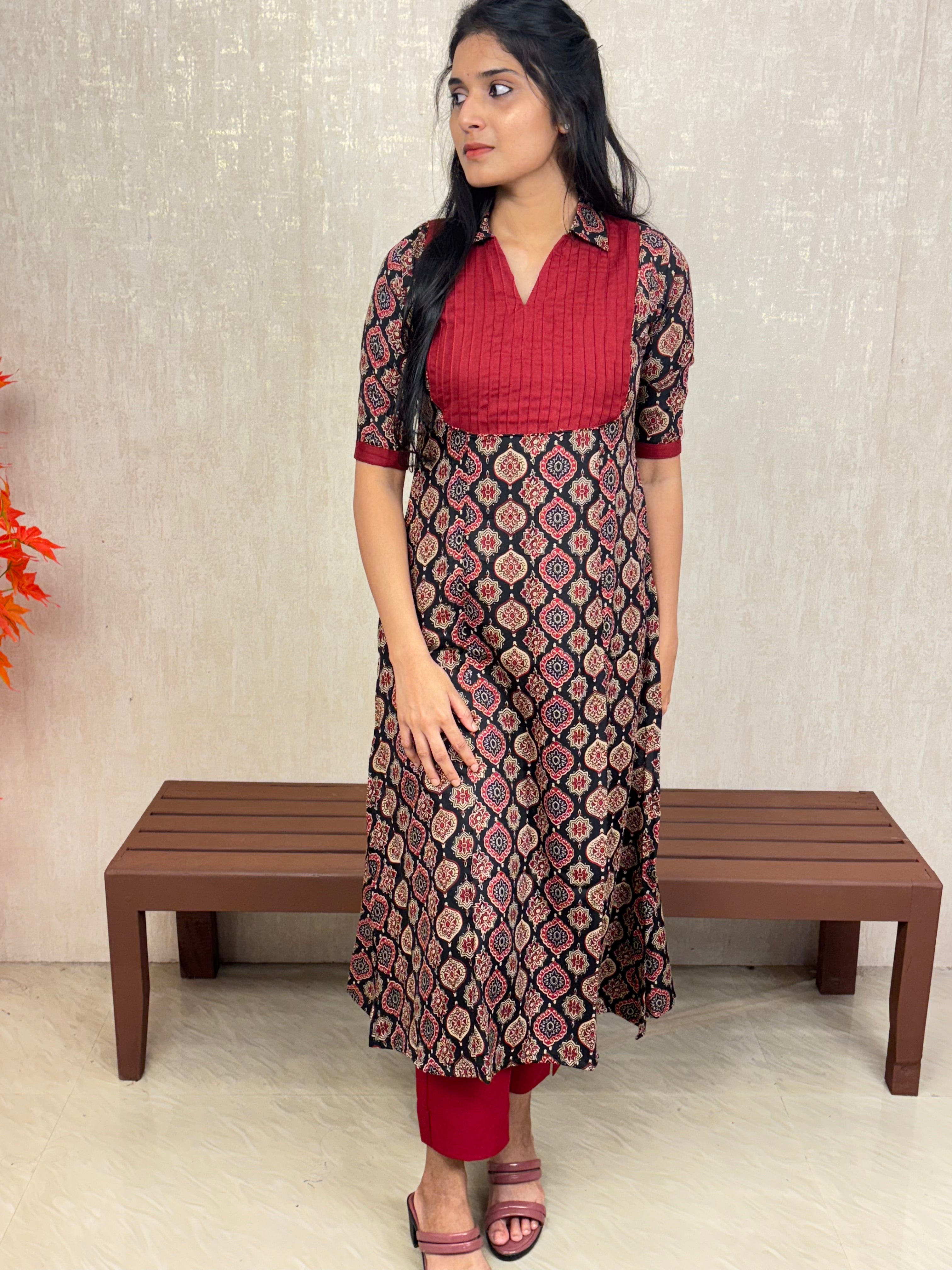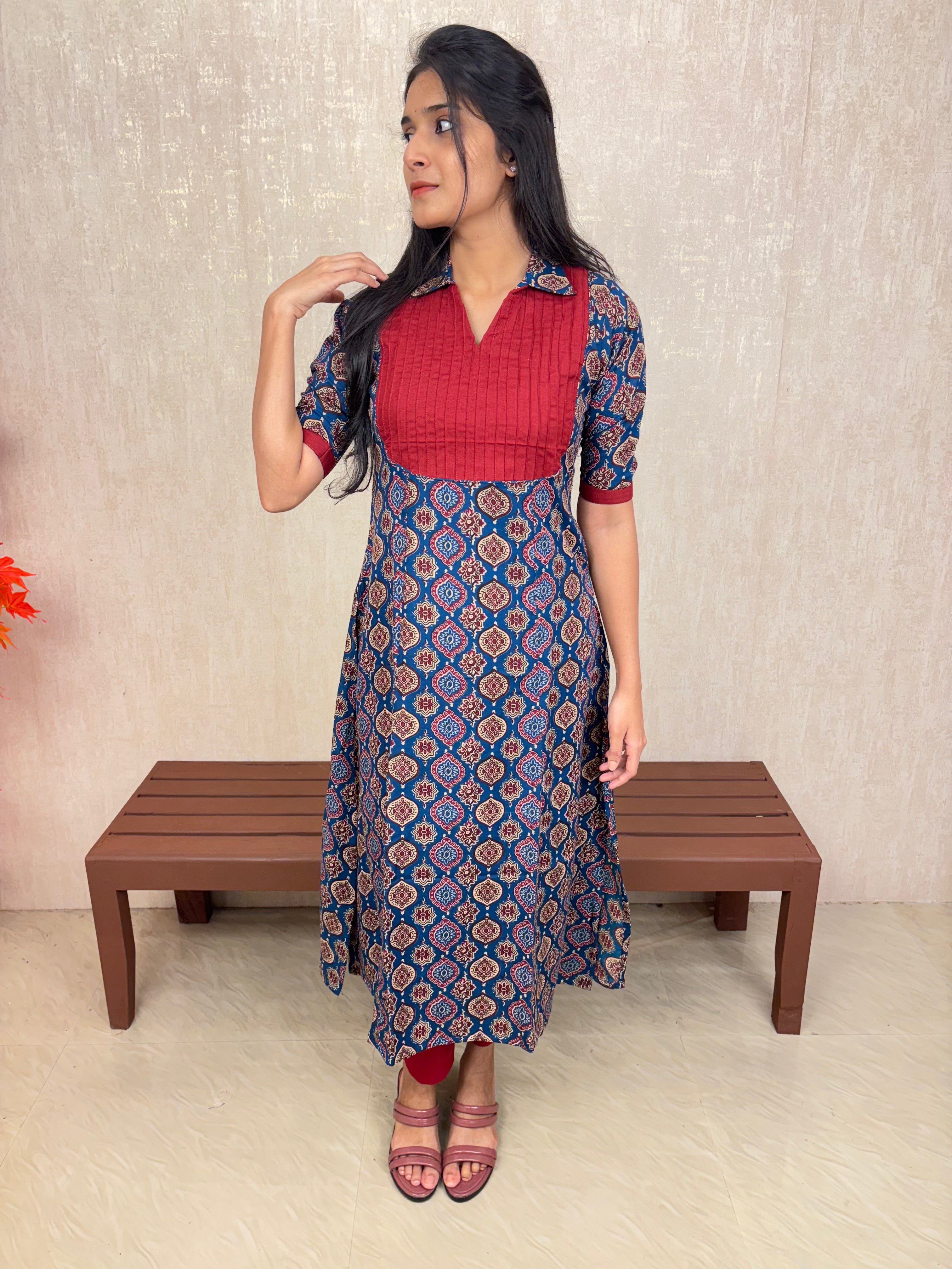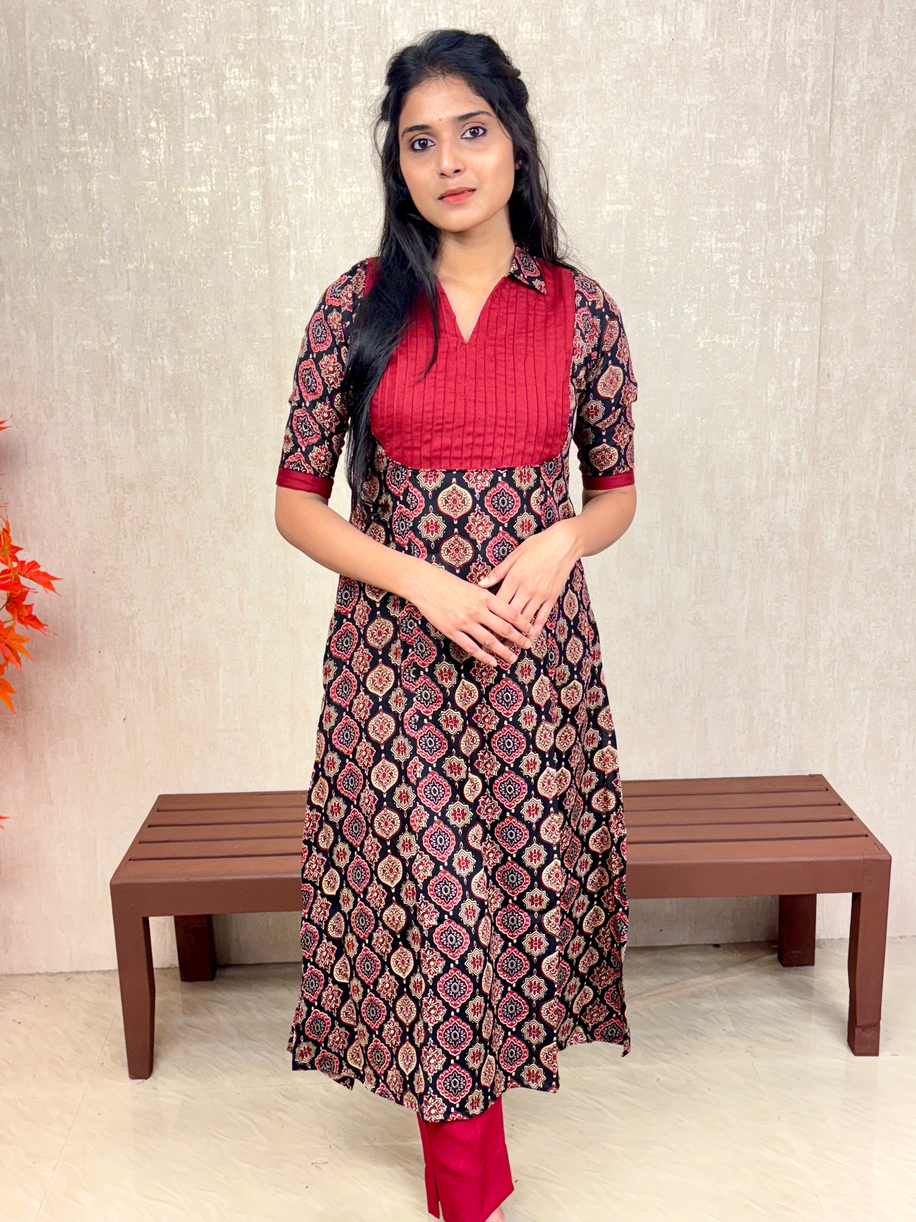 Printed Cotton A-Line Kurti with Pin Tuck Yoke – EC073