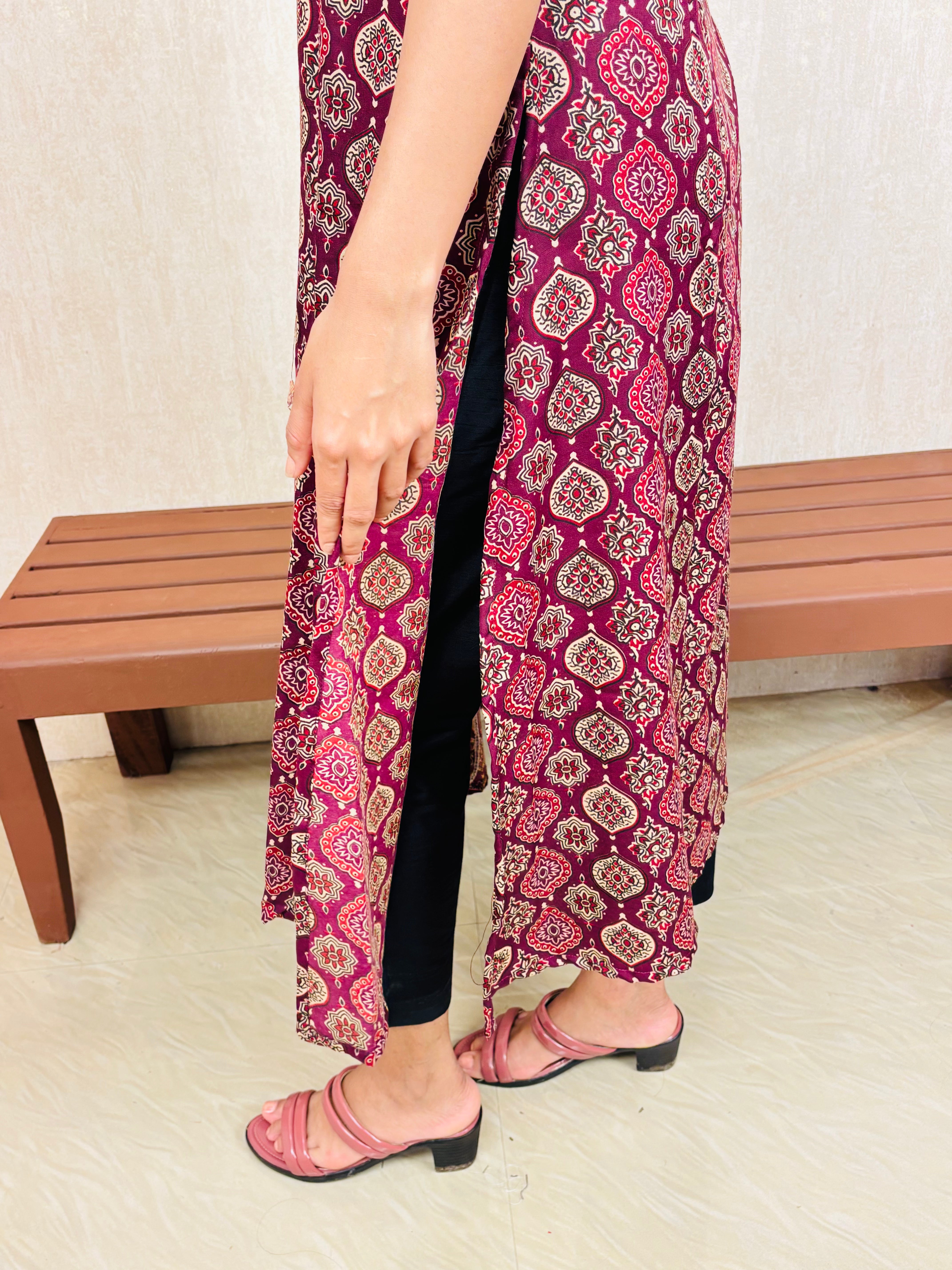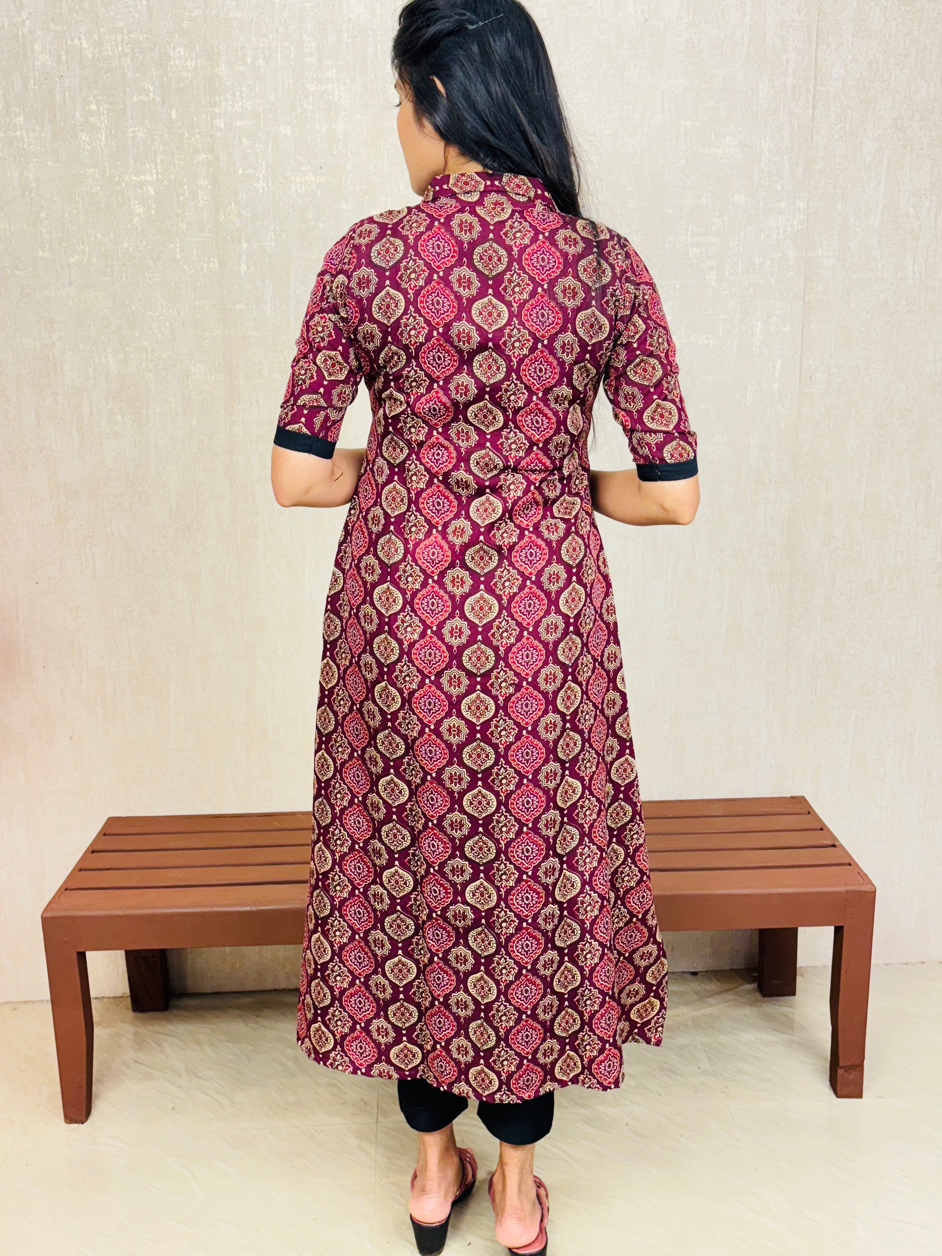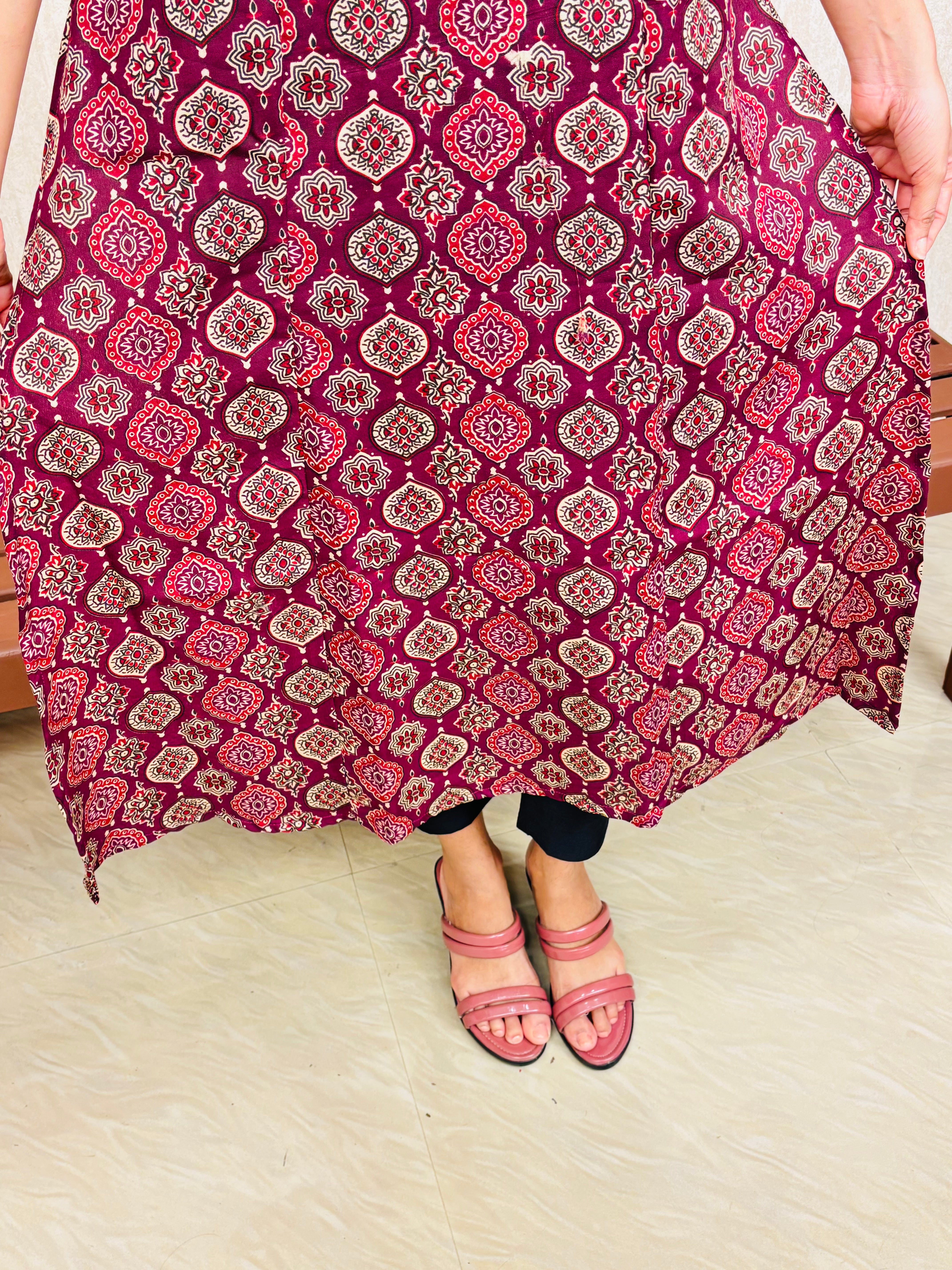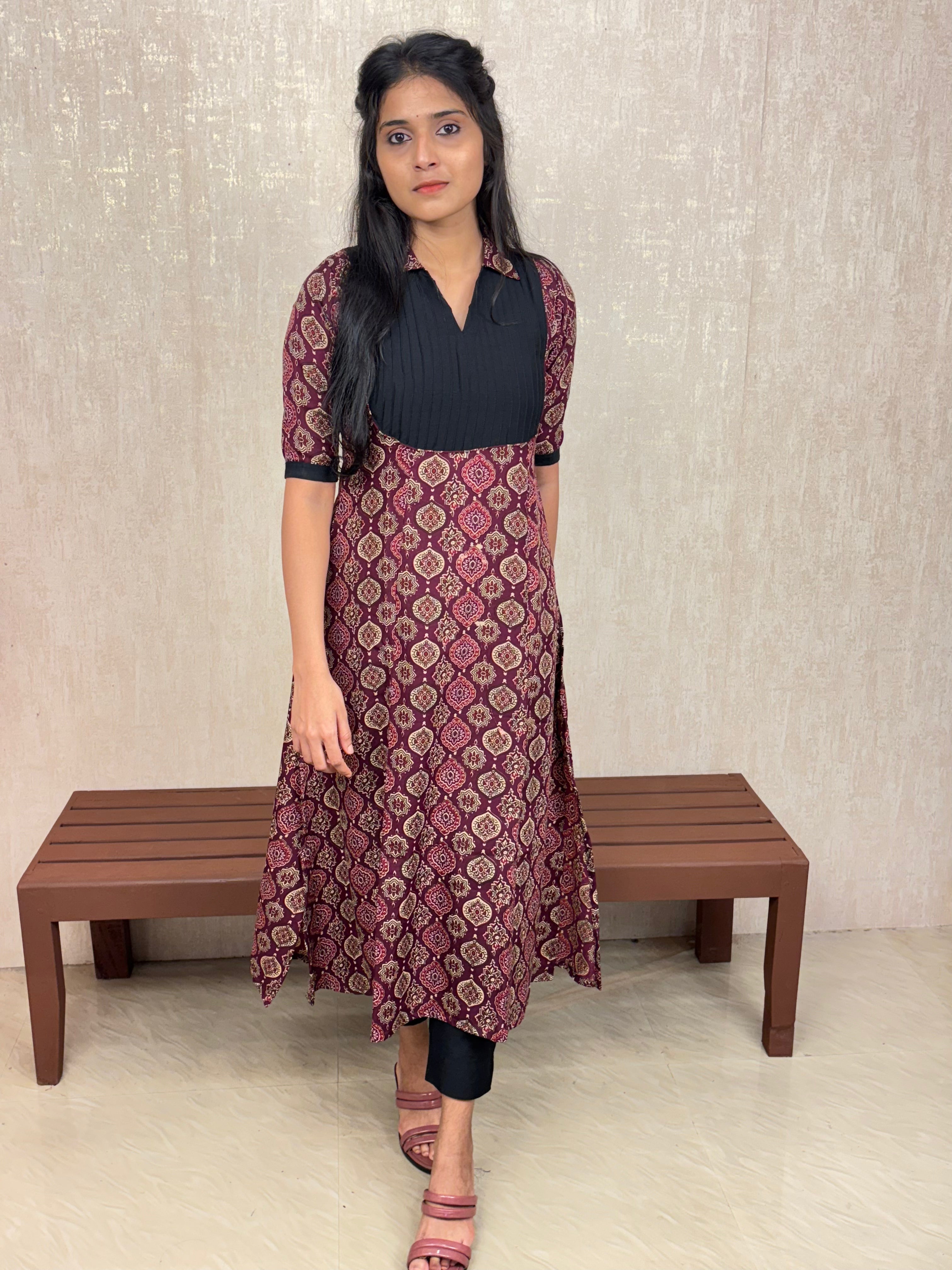 Printed Cotton A-Line Kurti with Pin Tuck Yoke – EC073