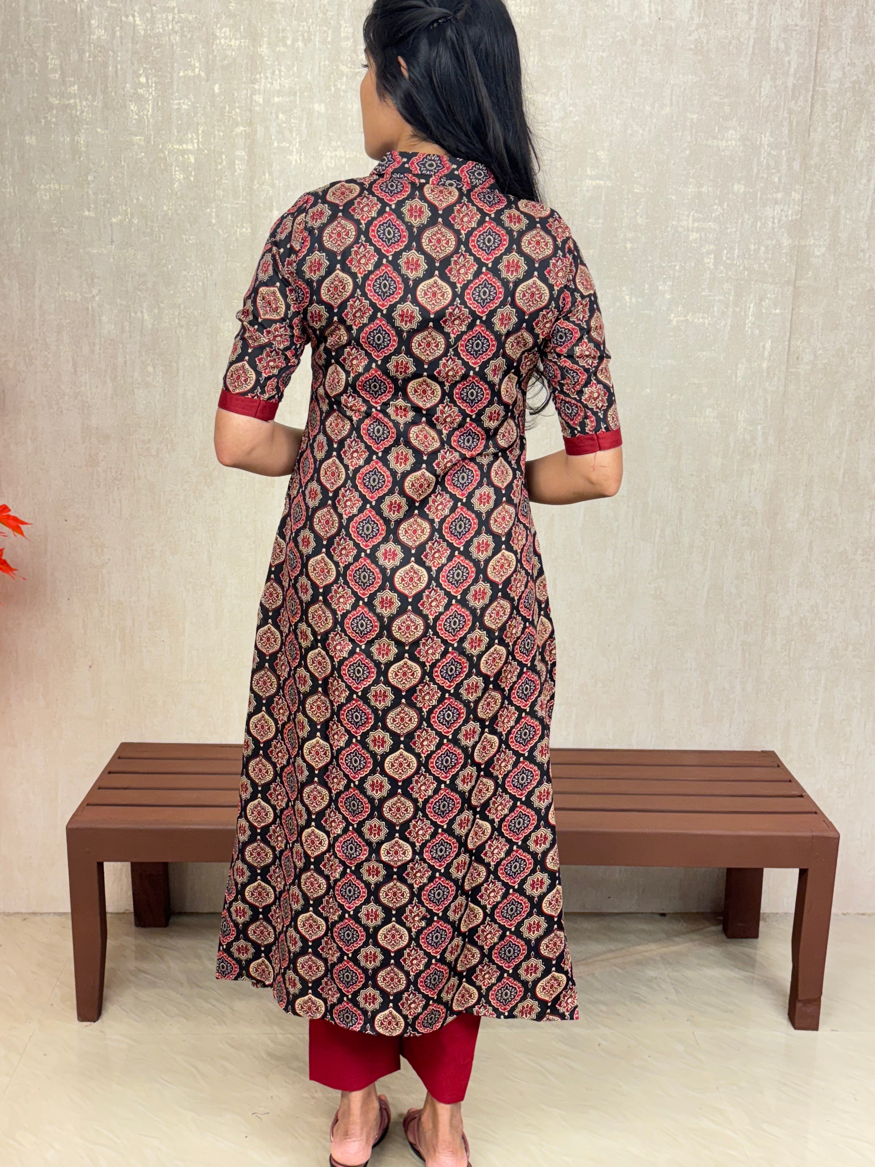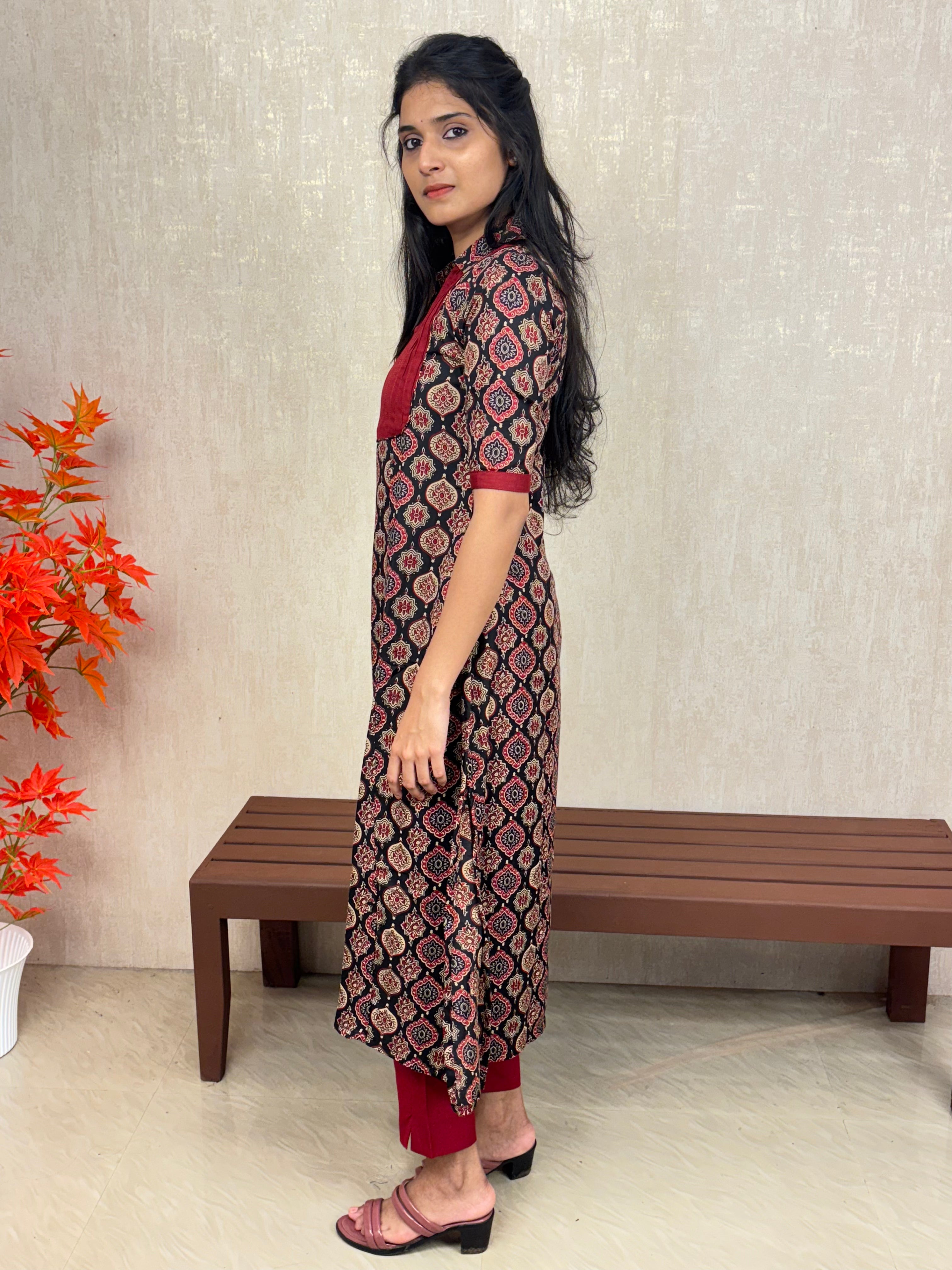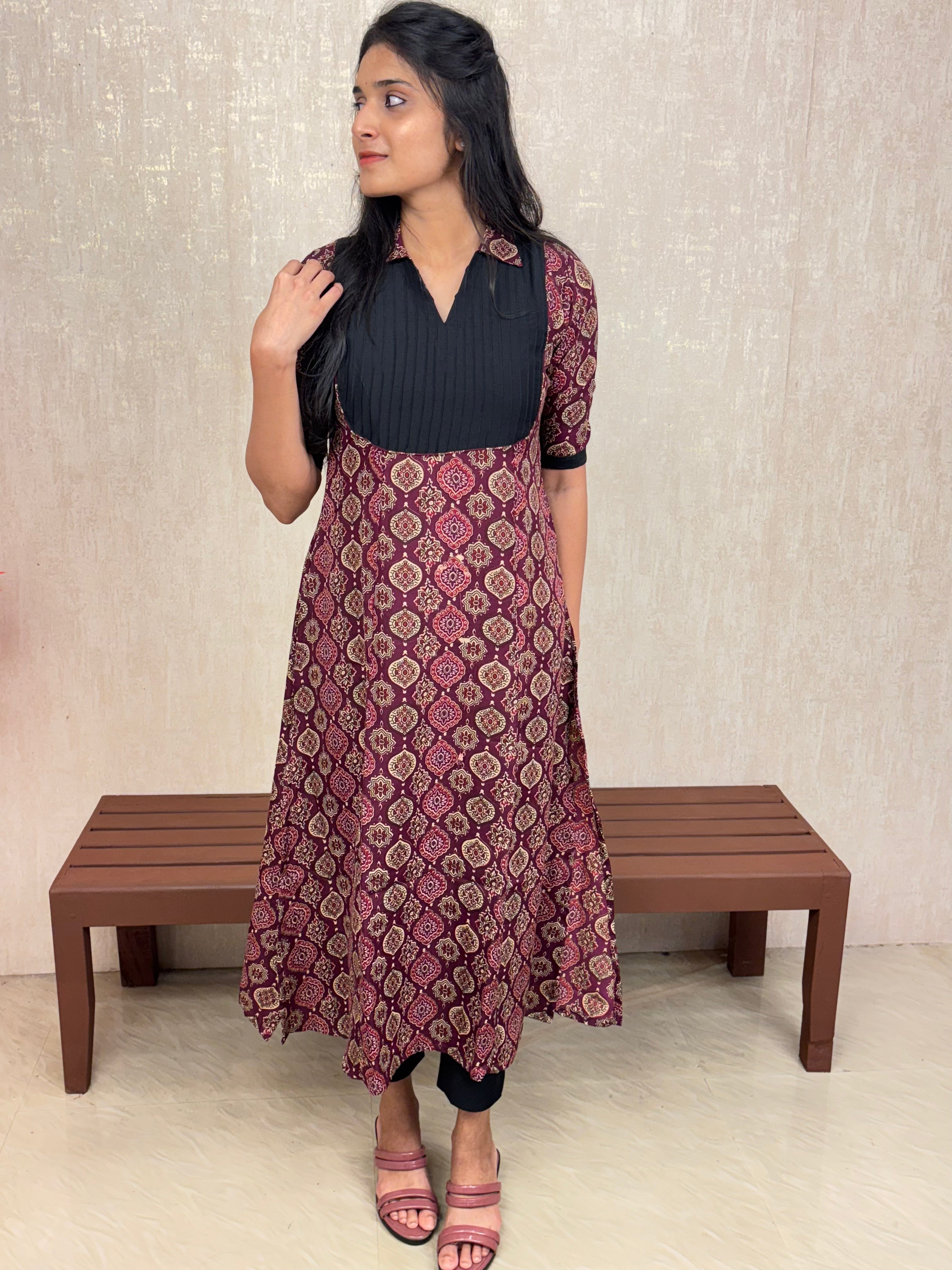 Bring comfort and style together with this elegant cotton A-line kurti set. Crafted from pure cotton, it features a mix... Read more