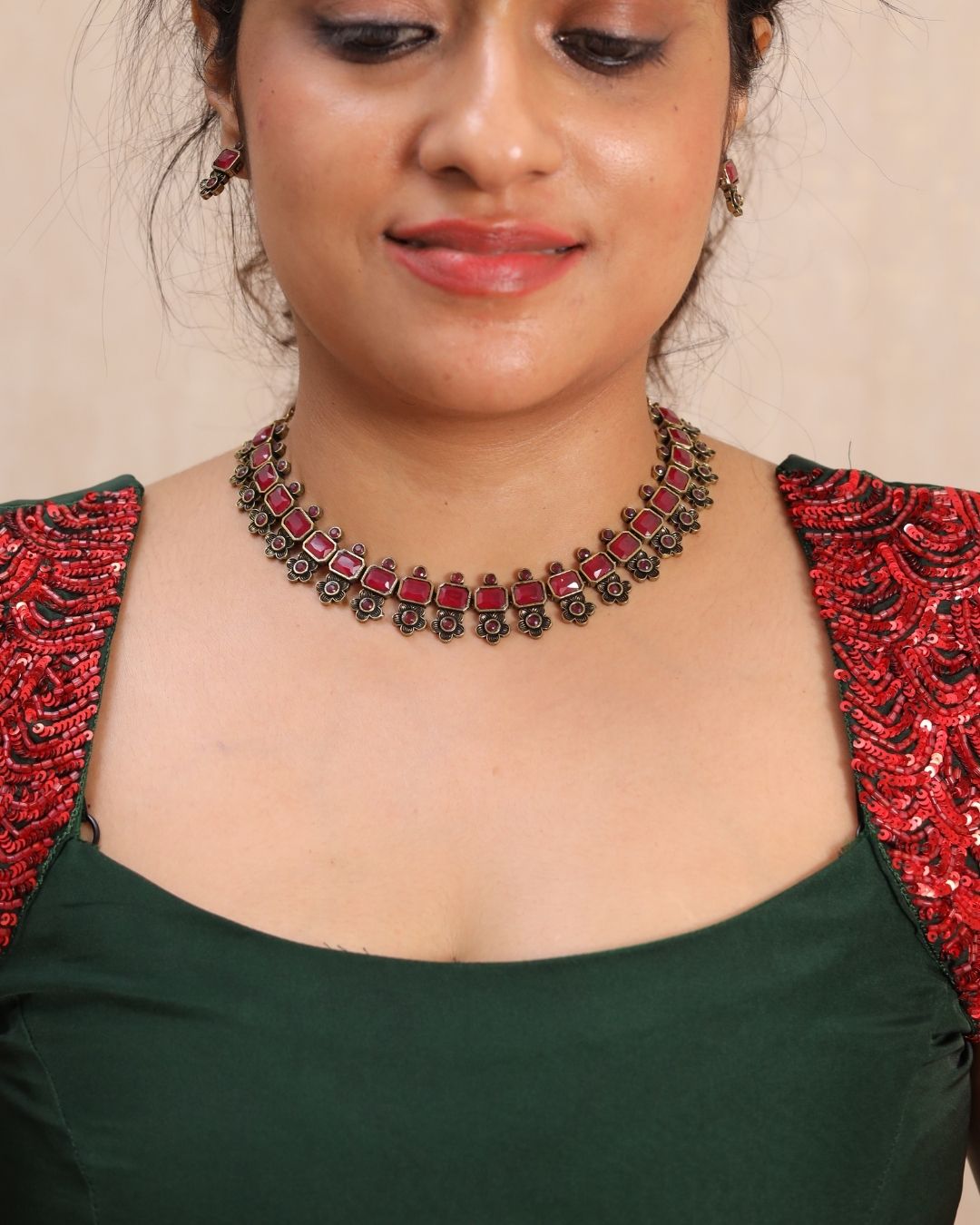 This piece highlights the neckline beautifully and adds a bold, elegant pop of color to your outfit. Perfect for customers who love classic jewellery with a modern touch.