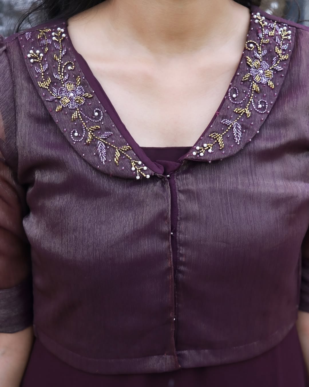 Two-Piece Georgette Jacket Dress with Hand Work – EC01