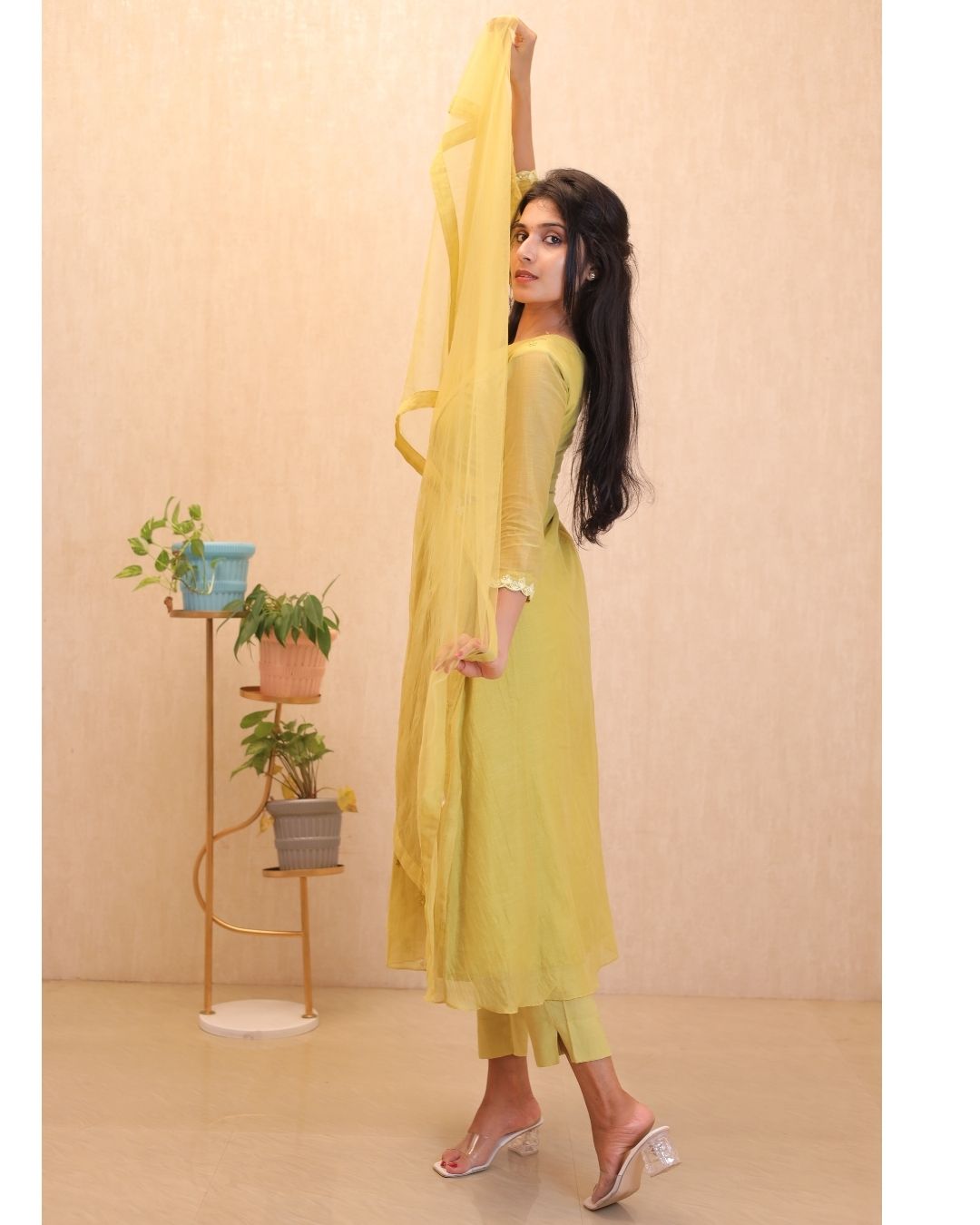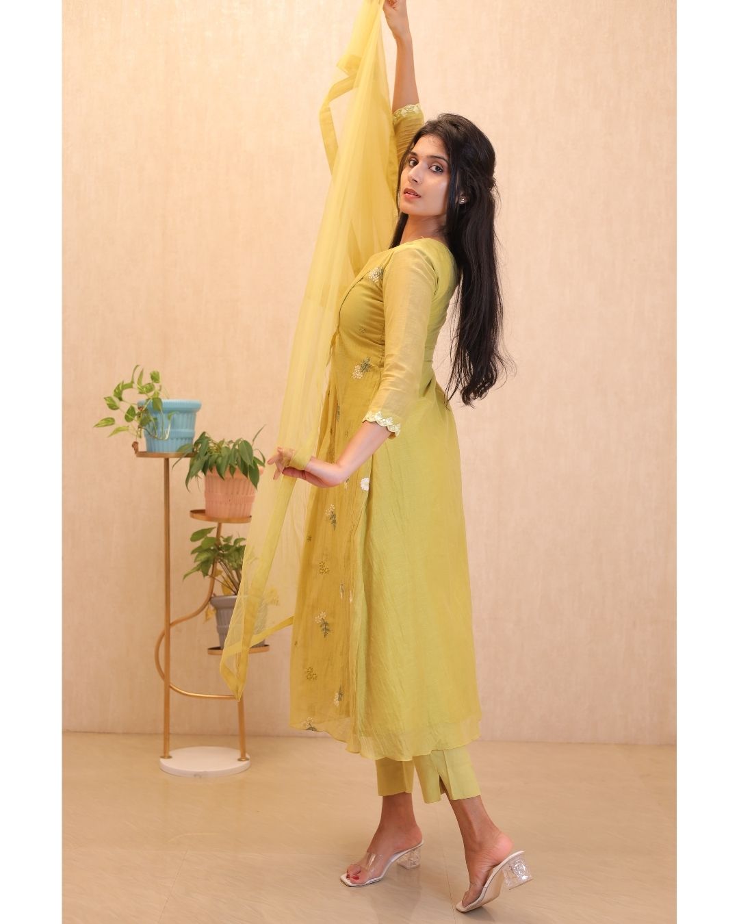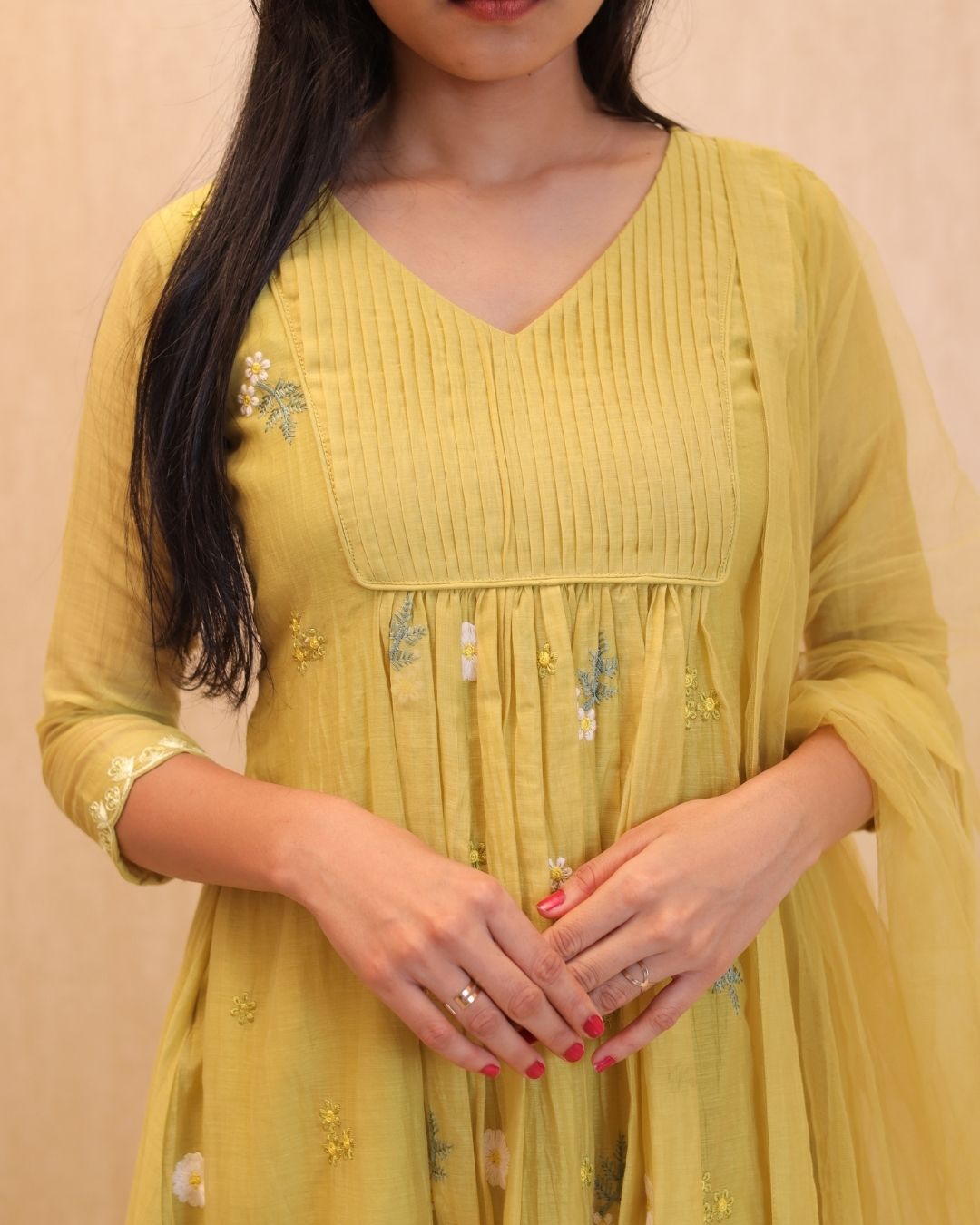 Yellow Mul Chanderi Embroidered Gown Set - EC107
